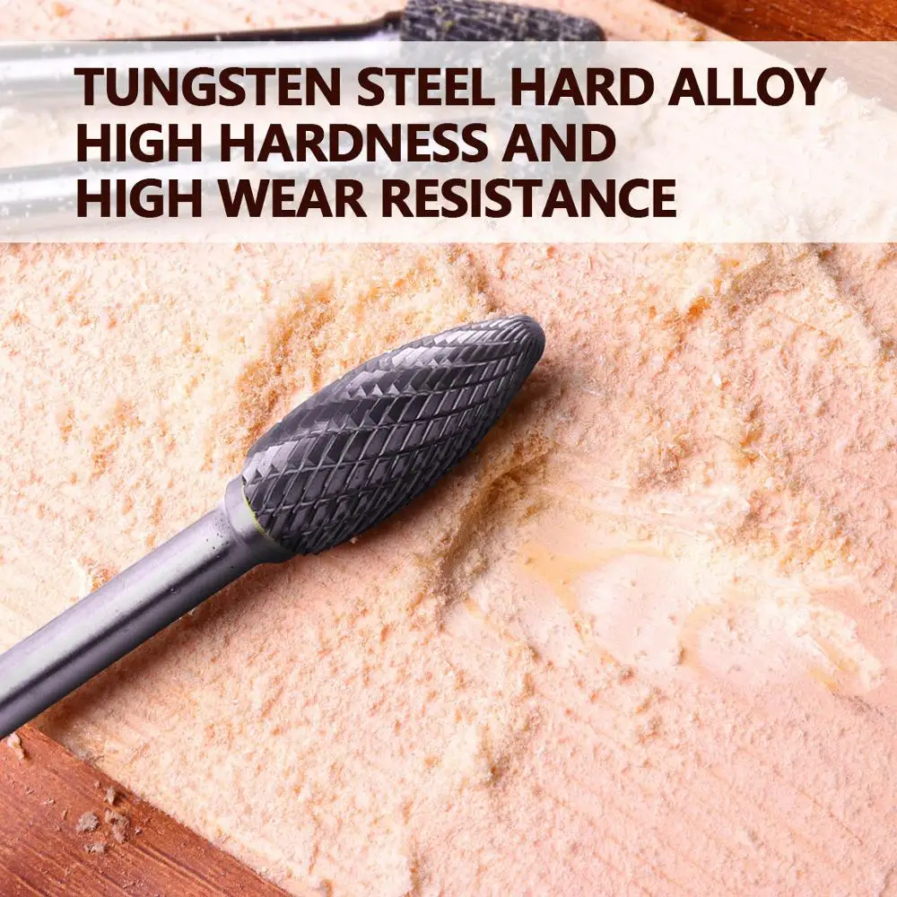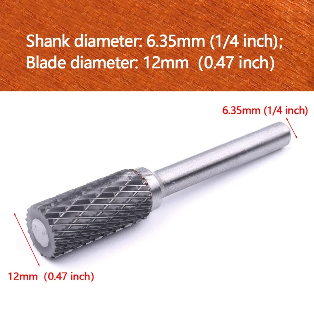 Высокое качество 1 шт. 1/4 "Карбид вольфрама заусенцы 6,35 мм двойной зернистый роторный резак файл 12 мм Диаметр лезвия Деревообрабатывающие инструменты