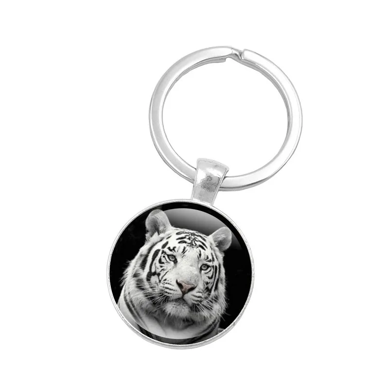 Модный Цветной брелок для ключей белый тигр искусство стеклянный купол кулон брелок животное ювелирное изделие брелок для ключей для женщин подарок брелок