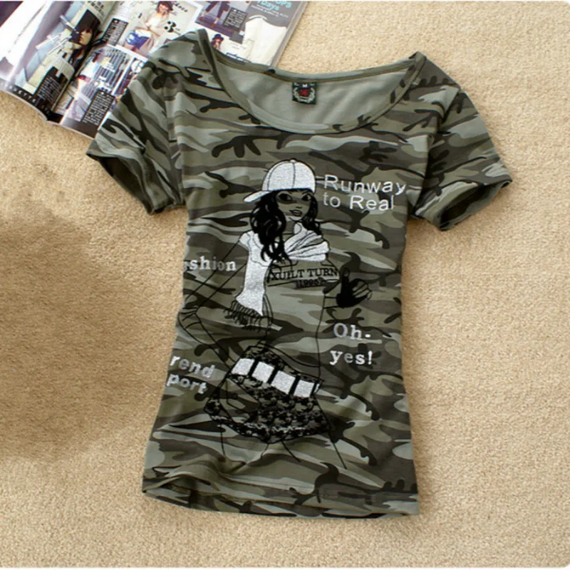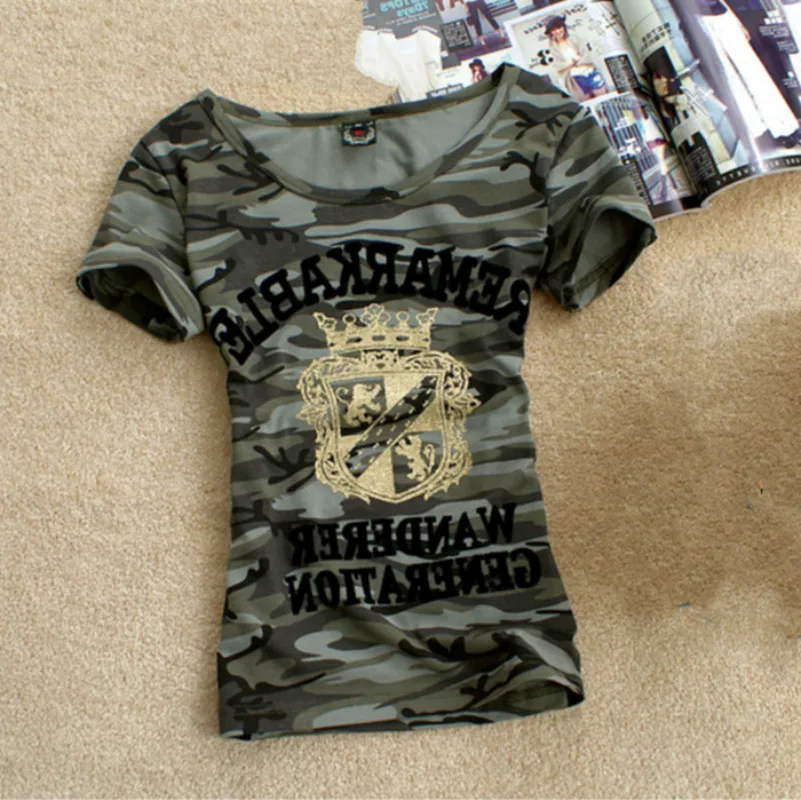 Футболка женская камуфляжная стрейчевая, с надписью корона, большой размер 4XL