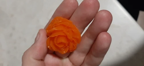 jak w opisie- myślałem że będzie trochę większa róża, ale jest o.k. miękki silikon- polecam