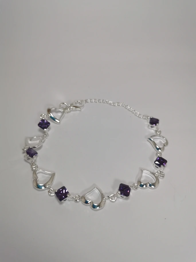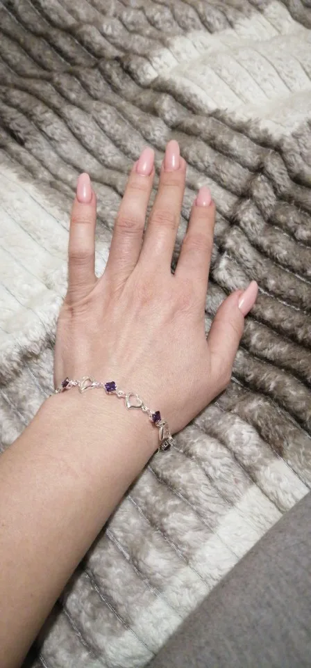 Женский браслет DOTEFFIL, из стерлингового серебра 925 пробы, с фиолетовым сердцем из циркония, ювелирные изделия для помолвки, рождественский подарок