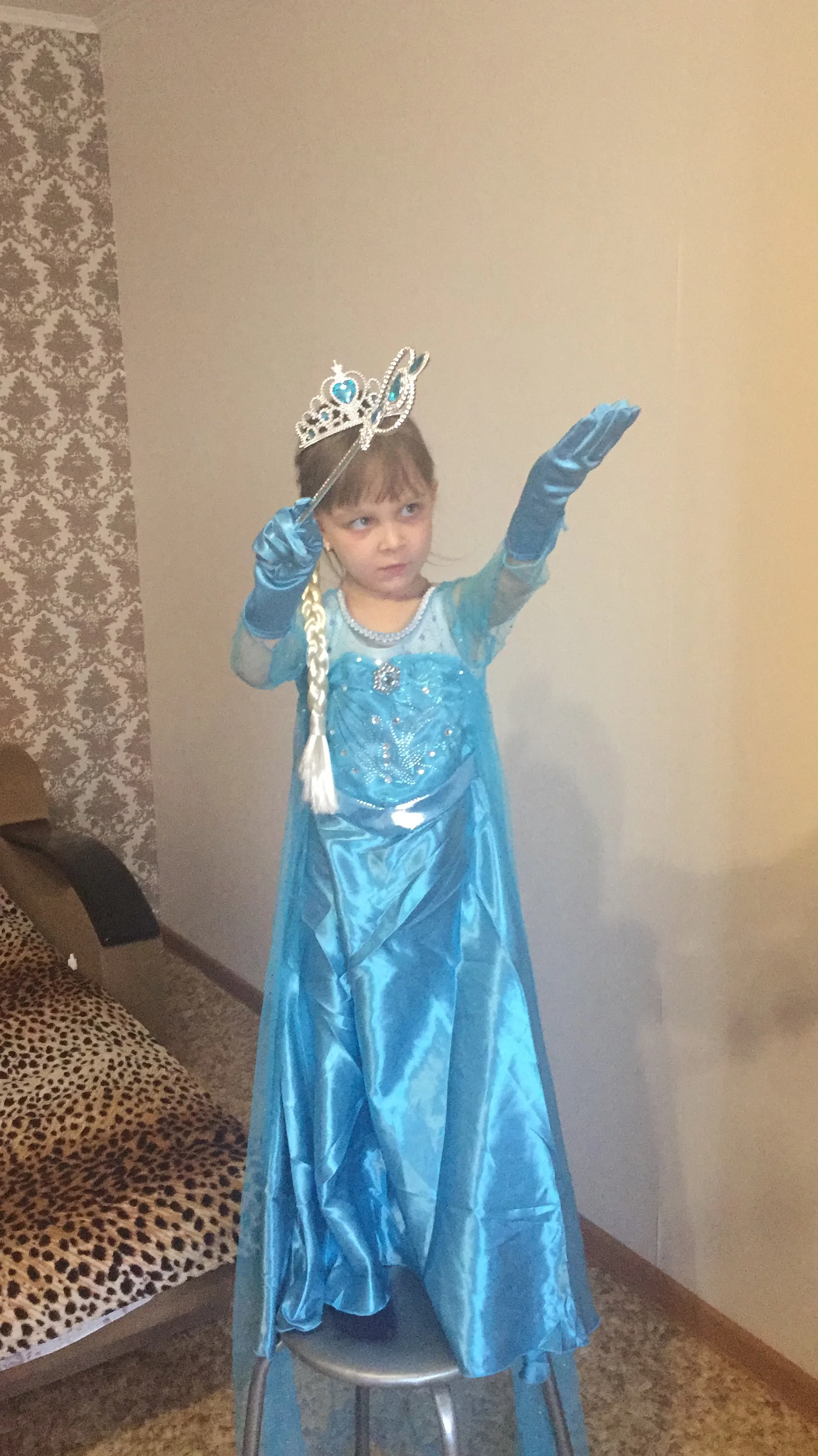 Замечательное платье,за такую цену,да ещё и с аксессуарами. А самое главное это доставка,продавец отправил сразу же,и за 11 дней дошло до СПБ. Дочь вдруг захотела на день рождения платье Эльзы,я заказала,но думала не успеет дойти,но пришло и даже раньше) спасибо огромное продавцу. Размер 6,на платье метка 130,рост ребёнка 114,нам будем большевато,но это не страшно. Качество хорошее. Я довольна)