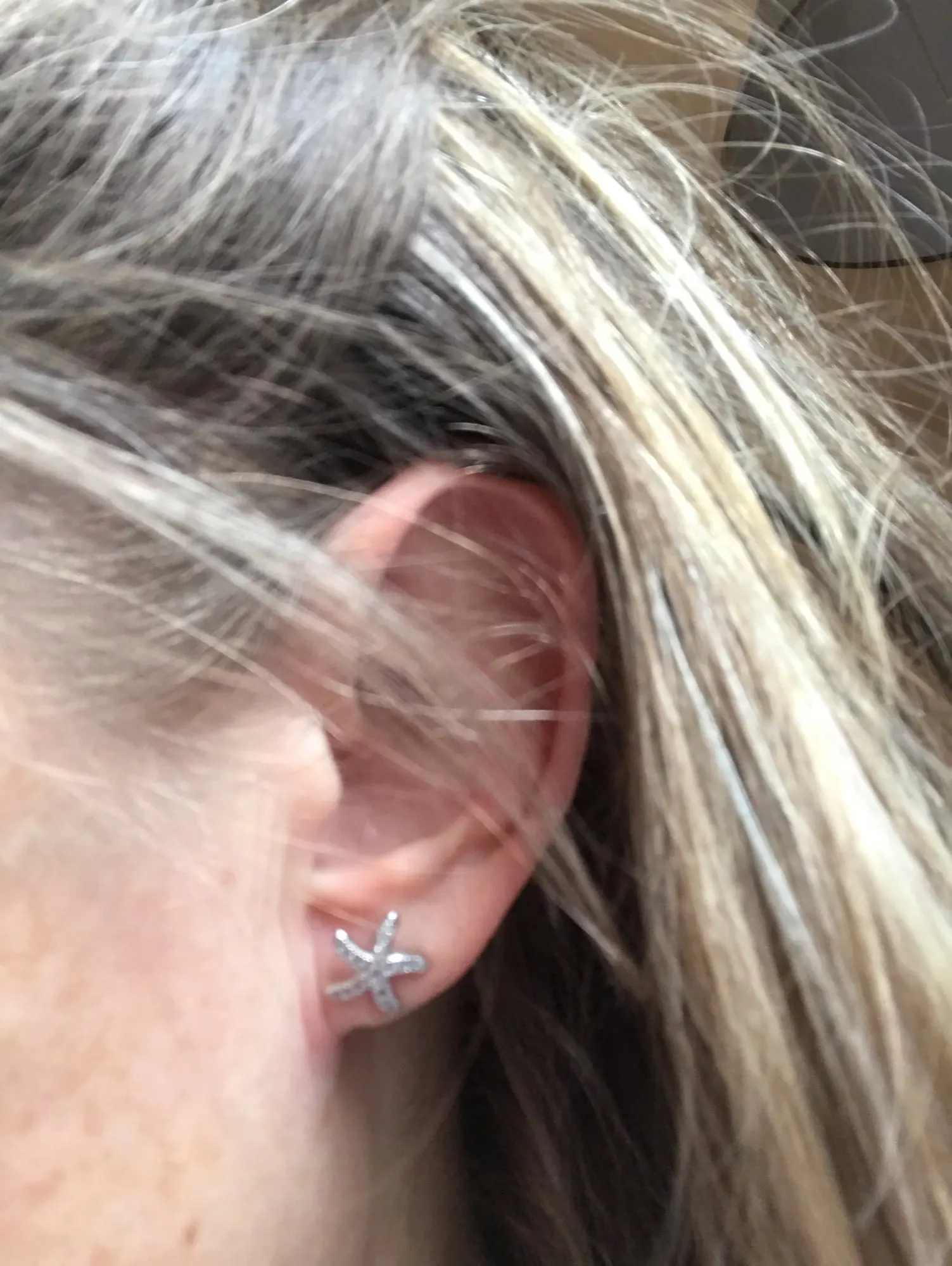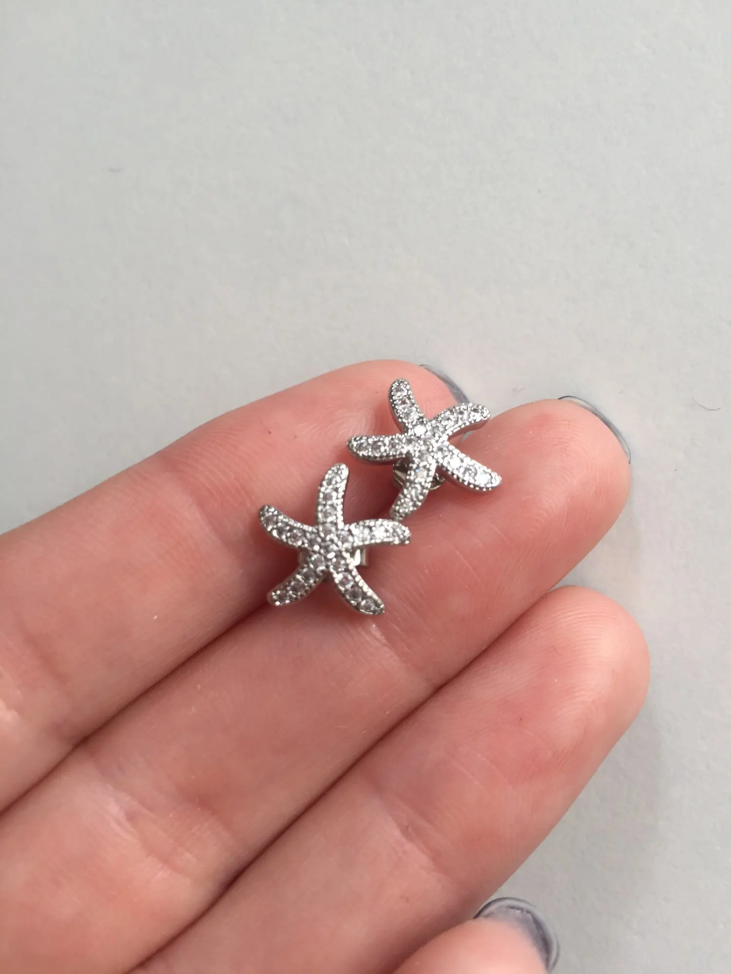 Серьги из серебра 925 пробы, с микрокристаллами и морской звездой