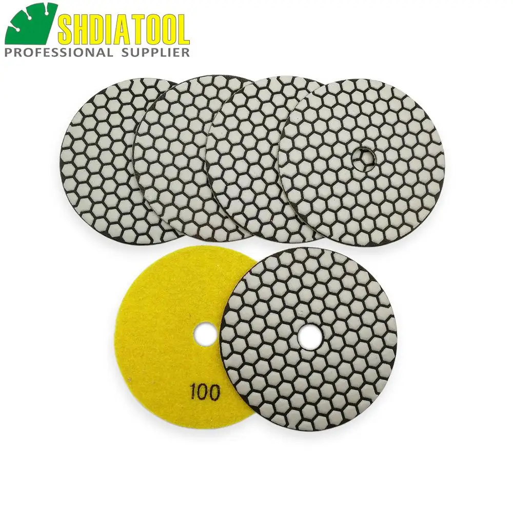 SHDIATOOL 6 шт. 5 "сухая полировка #100 гранит мрамор Сухая Полировка Смола Бонд Алмазная Гибкая полировка Дикс Полировщик колодки