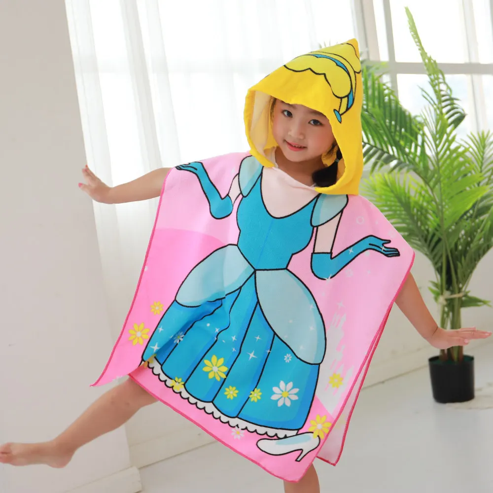 Новое Модное детское банное полотенце с капюшоном, пляжные полотенца из микрофибры для мальчиков и девочек, супервпитывающие пляжные шали с мультяшным рисунком для детей от солнца
