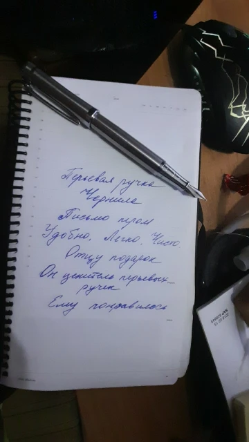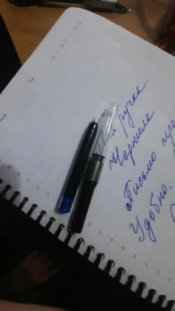 Хорошая ручка, металлическая, пишет отлично, баночку чернил можно в любом концелярском за 40р Берите не пожалеете, закажу ещё!