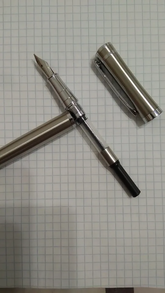 Авторучка отличная. Корпус металлический. Смотрится солидно. Насос для набора чернил поршневой, удобный. Пишет, на мой взгляд, толстовато, но мягко. Зачёт.