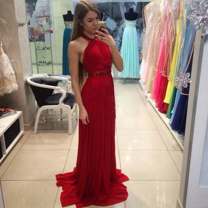 Женское вечернее платье It's yiiya, Красное длинное платье с круглым вырезом на лето 2019