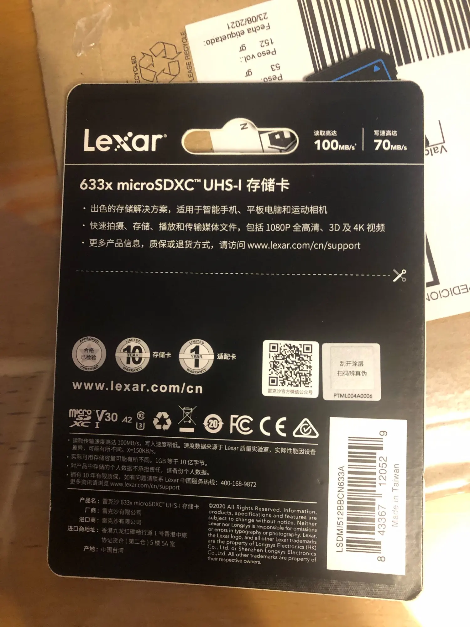 Заказал 17.09, получил 28.09 на кассе в "Пятерочке". До этого заказывал SanDisk-и до 256 ГБ включительно серии Extreme. Но ценник на SanDisk 512 ГБ заставил задуматься и поискать альтернативу. Остановился на Lexar. Первые впечатления очень хорошие. При ценнике в полтора-два раза ниже SanDisk-а Extreme, Lexar ничем ему не уступает. Тестировал в кардридере, который на втором фото. Ридер неплохой, но во время теста адски грелся. Может кому пригодится, сейчас карточка стоит в старенькой камере YI 4K. Камера прекрасно её распознаёт и пишет, хотя заявлена поддержка карт с максимальным объёмом 64 ГБ. На карту вмещается более 11 часов видео в формате 4K/30fps. Также карту прекрасно распознал уже не молодой планшет CHUWI Hi10 Air, у которого так же заявлена поддержка карт с максимальным объёмом 64ГБ. Чуть позже закажу здесь такую же и для планшета. Товар и продавца настоятельно рекомендую. Однозначно 5 звёзд.