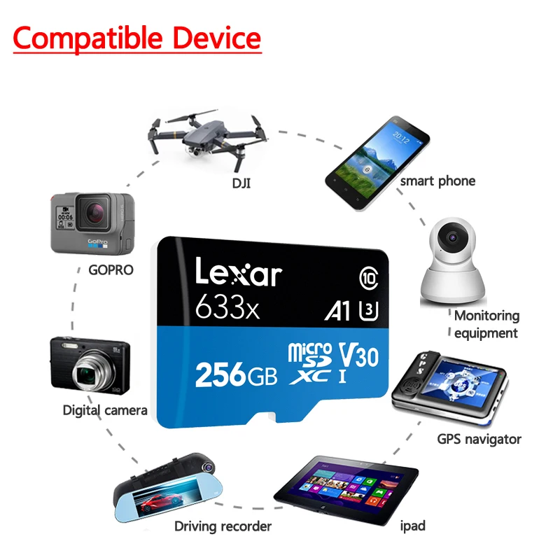 Карта памяти Lexar 633x 95 МБс. Micro SD 256 ГБ 512 ГБ 32 ГБ SDHC Class10 64 Гб 128 ГБ