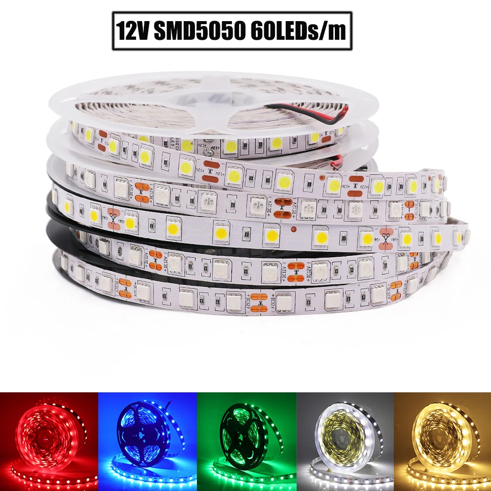 Новый SMD 2835 5050 светодиодный ленточный светильник 12 в 60 светодиодовм водонепроницаемый IP65 IP21 теплый белыйRGBкрасныйсинийзеленый Гибкая полоса веревки