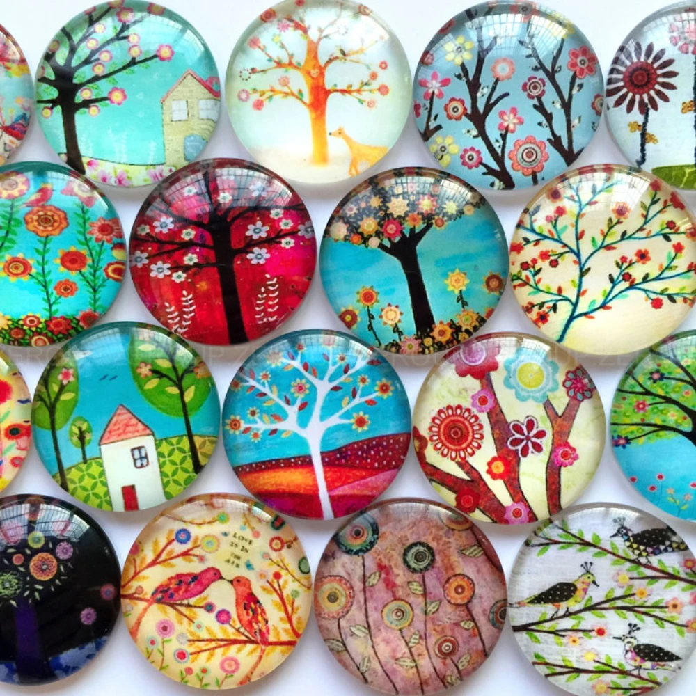 Круглый стеклянный кабошон ZEROUP 20 мм 25 мм, смешанный рисунок, п...