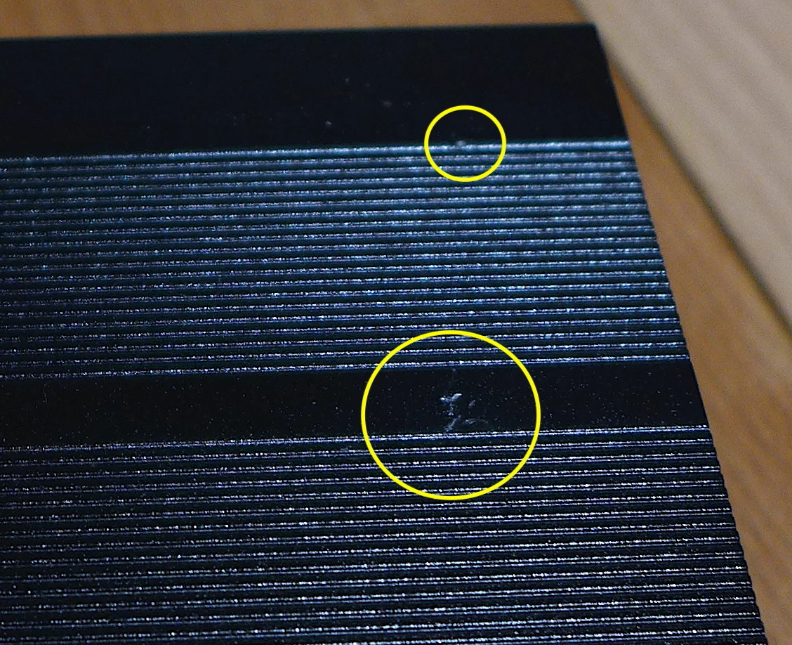 Это позор. Во время транспортировки возникли небольшие царапины. Один угол и верхняя поверхность. Покройте углы, чтобы сделать низ.