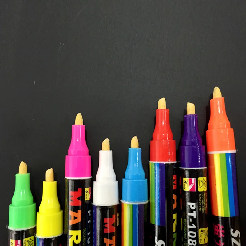 Набор стираемых неоновых маркеров с жидким мелом, 8 цветов, 6 мм
