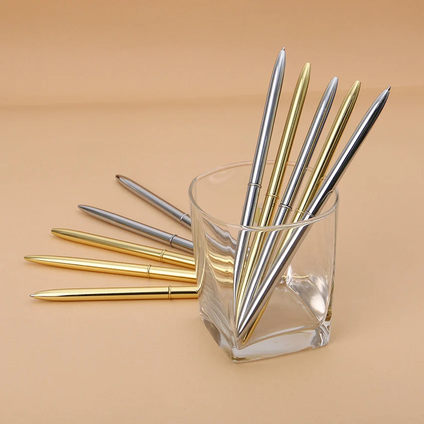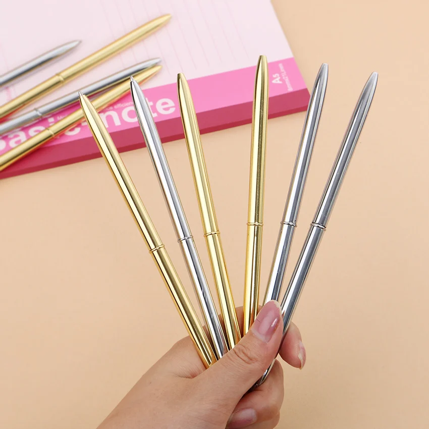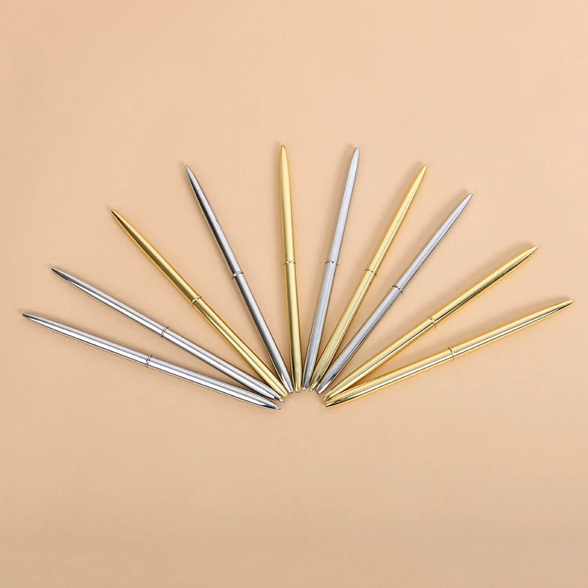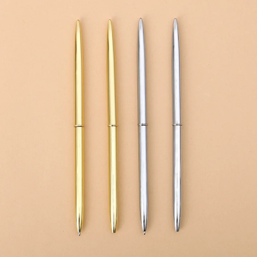 Золотистая и серебристая шариковая ручка, два цвета на выбор, минимализм, Сверхтонкая шариковая ручка, вращающаяся шариковая ручка, канцелярские принадлежности для письма, Офисная ручка