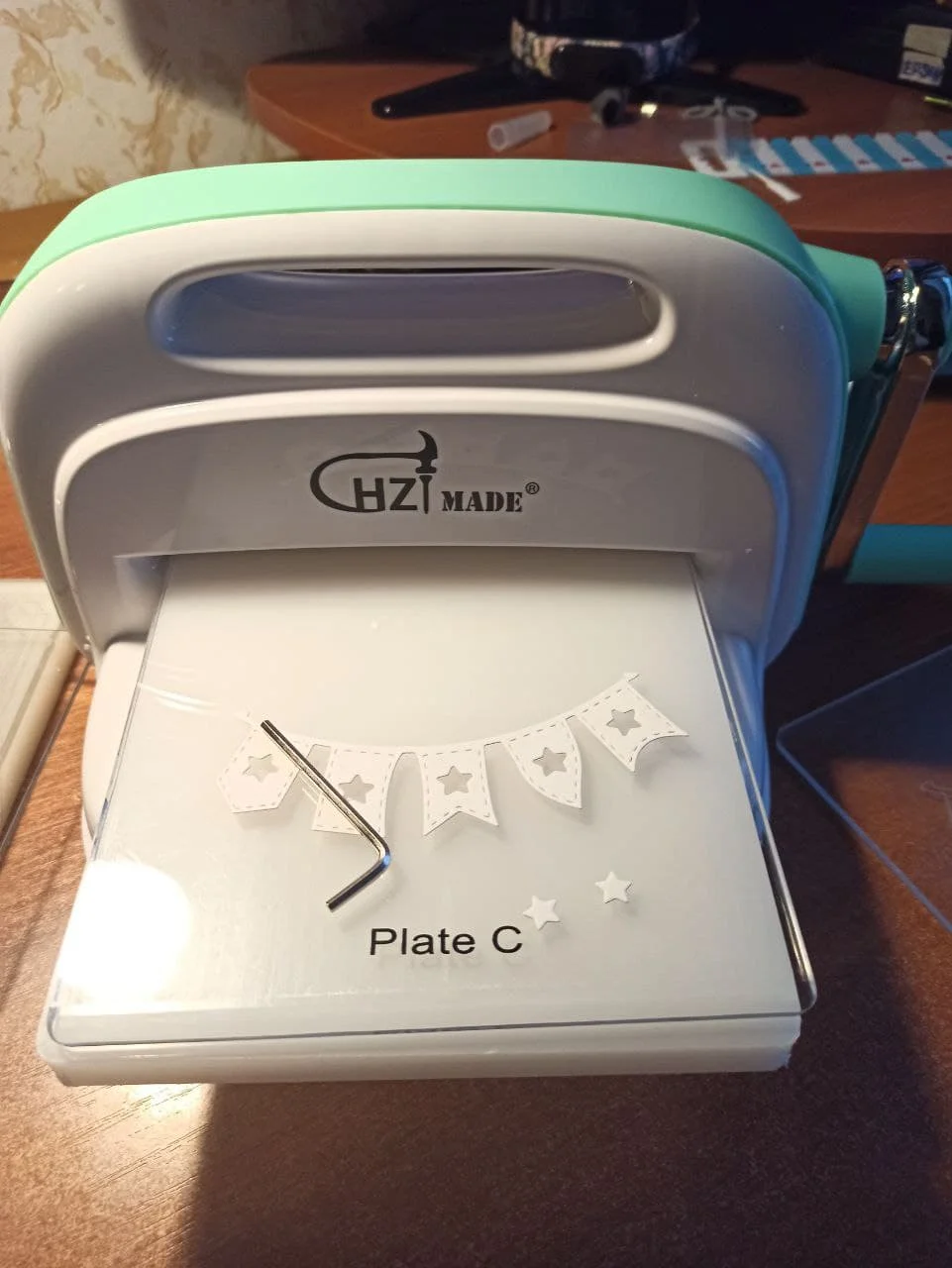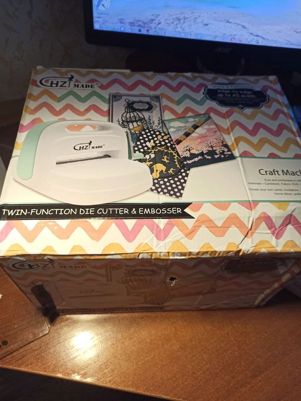 Супер быстрая доставка!! Рекорд - два дня!! Принёс курьер, коробка чуть чуть сбоку помята. Сама машинка внутри в пенопласте, все очень аккуратно. Проверила как работает на фото и на картоне - вырубает хорошо. На пластинах ножи оставляют следы (это нормально?), вырубка ровная.