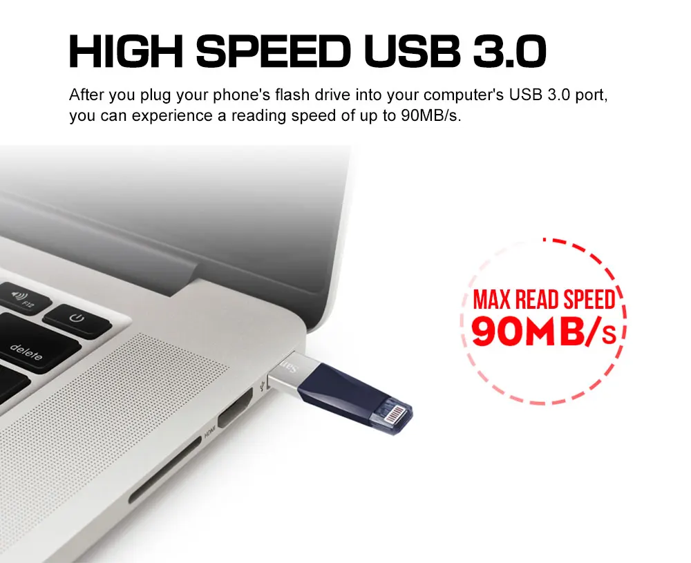 Накопитель отлично работает на iPad 2020, iPhone6! Посылка за 1 месяц добралась до Московской области и это очень большая удача, что дошла до адресата! так как продавец на упаковке посылки не указал индекс, телефон и адрес! Только RU, Кроме фамилии на английском языке, все было напечатано на китайском языке, а наши почтальоны его, к сожалению, не знают, так же как китайские почтальоны не знают русский язык! И это так называемая ускоренная доставка - plus! Посылка больше двух недель перемещалась по разным городам Московской области, Покупать в этом магазине больше не буду и вам не рекомендую!
