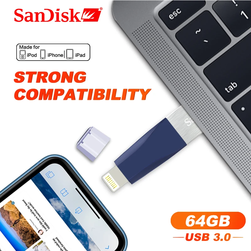 USB флеш-накопитель SanDisk USB3.0, usb флеш-накопитель 256 Гб OTG с разъемом Lightning, USB disk32 ГБ, 64 ГБ 128 ГБ для iPhone X 877Plus66plus