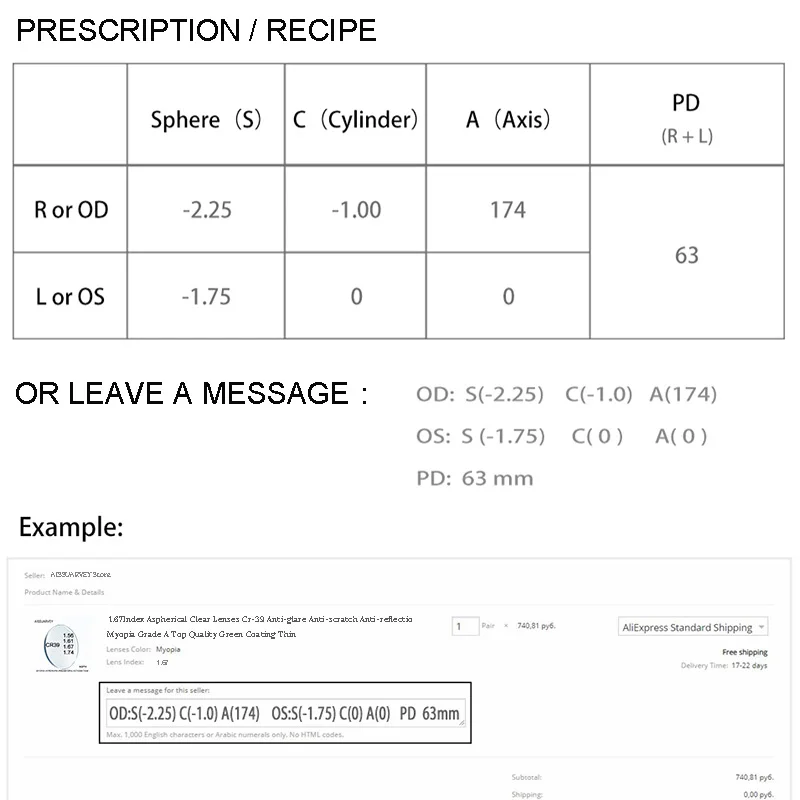 (1) Пожалуйста, оставьте сообщение о форме линз, цвете линз,