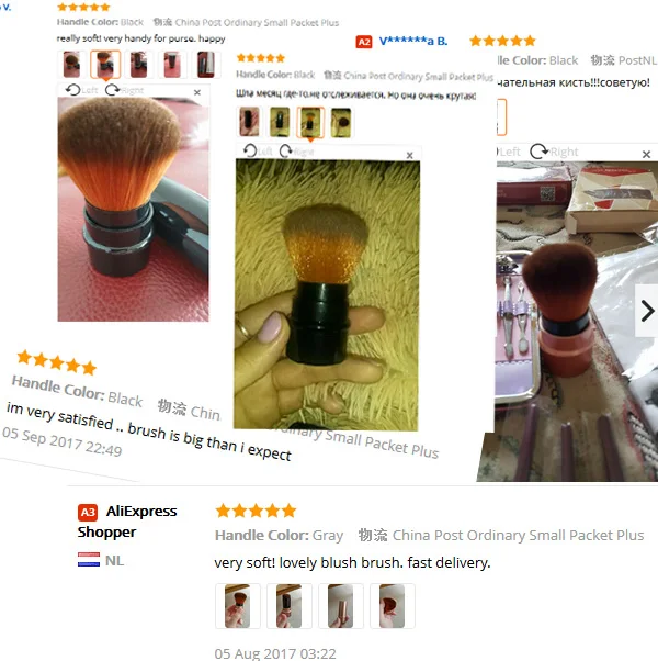 Заказываю уже второй раз такие кисти, в этот раз заказала две розовую и золотую, розовая отклеилась, но кисть можно склеить, все же это мелочи, но все равно неприятно. А так кисти очень классные, мягкие, хорошо набиты и маленькие, удобно хранить в сумочке.пришли быстро