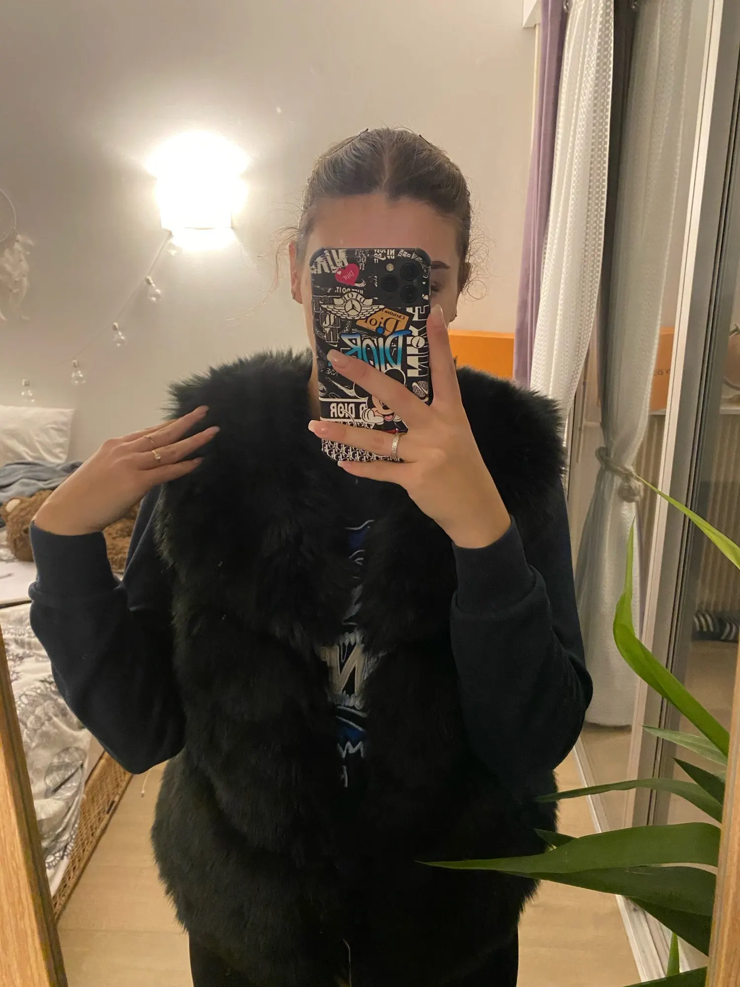 Красивый жилет из искусственного меха, но розовый цвет немного поврежден
