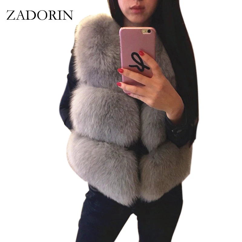 ZADORIN 3XL осенне-зимний плотный теплый жилет из искусственного лисьего меха, Женский высококачественный модный короткий меховой жилет с V-образным вырезом, женский меховой жилет