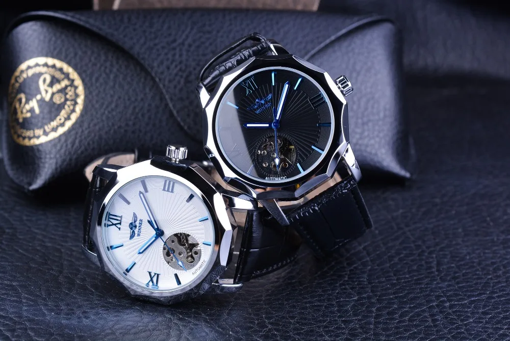 Победитель синий океан Геометрия Дизайн Прозрачный Скелет циферблат Мужские часы Топ бренд Роскошные автоматические Модные механические часы