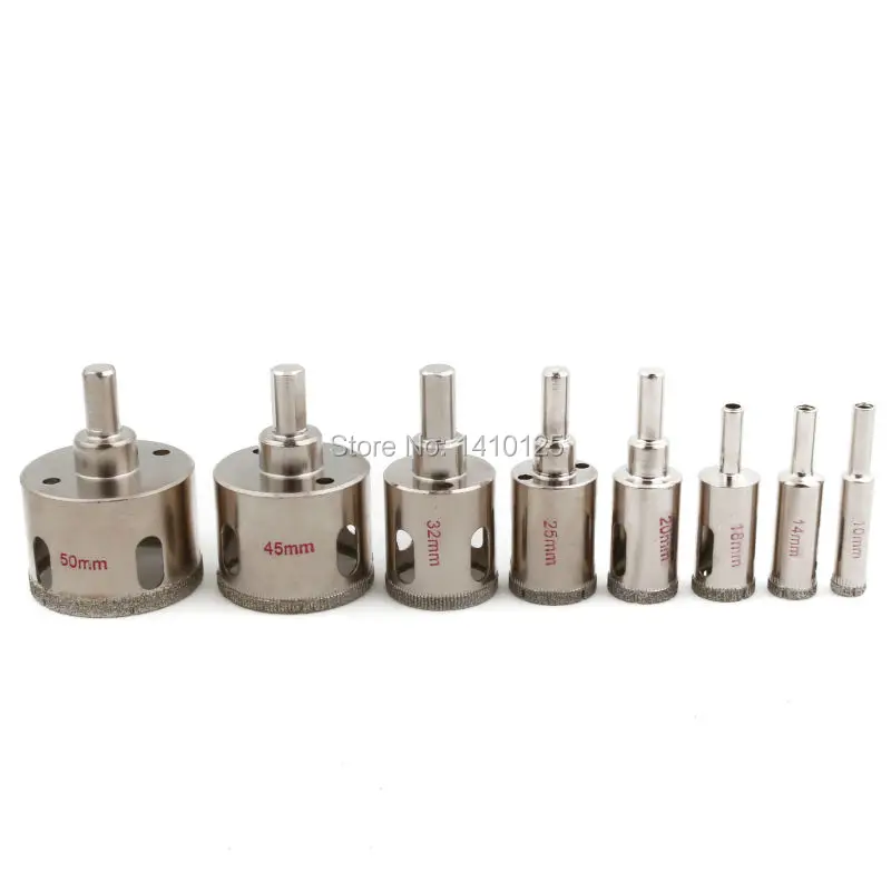 Набор алмазных отверстий, 8 шт., 10 14 18 20 25 32 45 50 мм, сверла с покрытием из гранита, для камня, мрамора, стекла, керамики