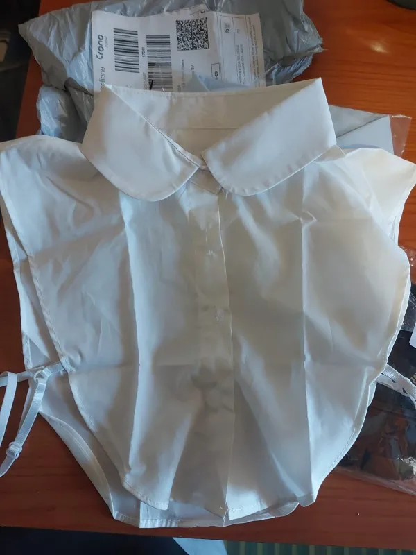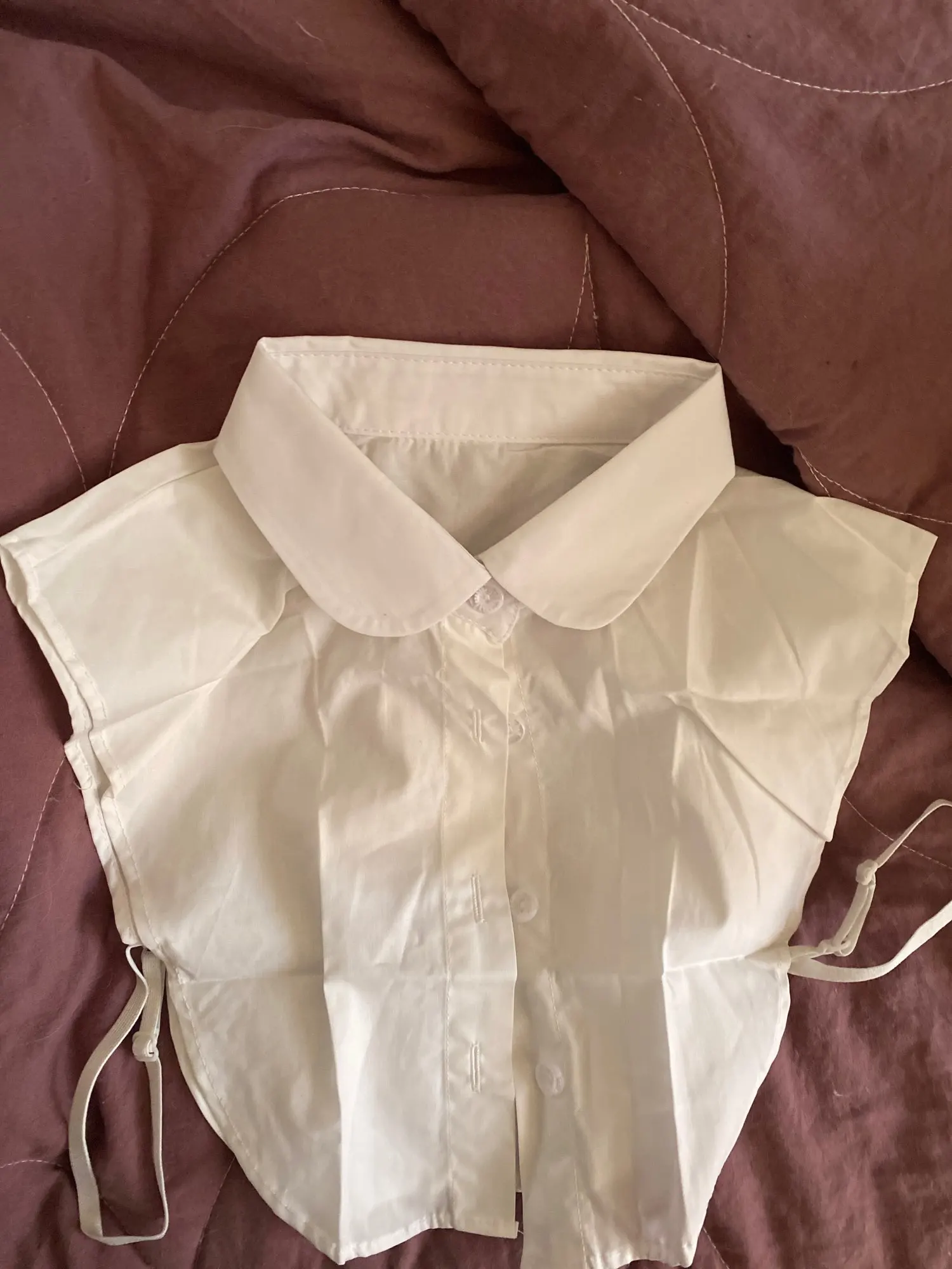 очень довольна, купила не зря, очаровательная штука, дополняет образ и можно читерить, надевая под цветные пуловеры, когда идешь в школу, никто не прокопается, потому что ты в блузке и тебе холодно, 10/10