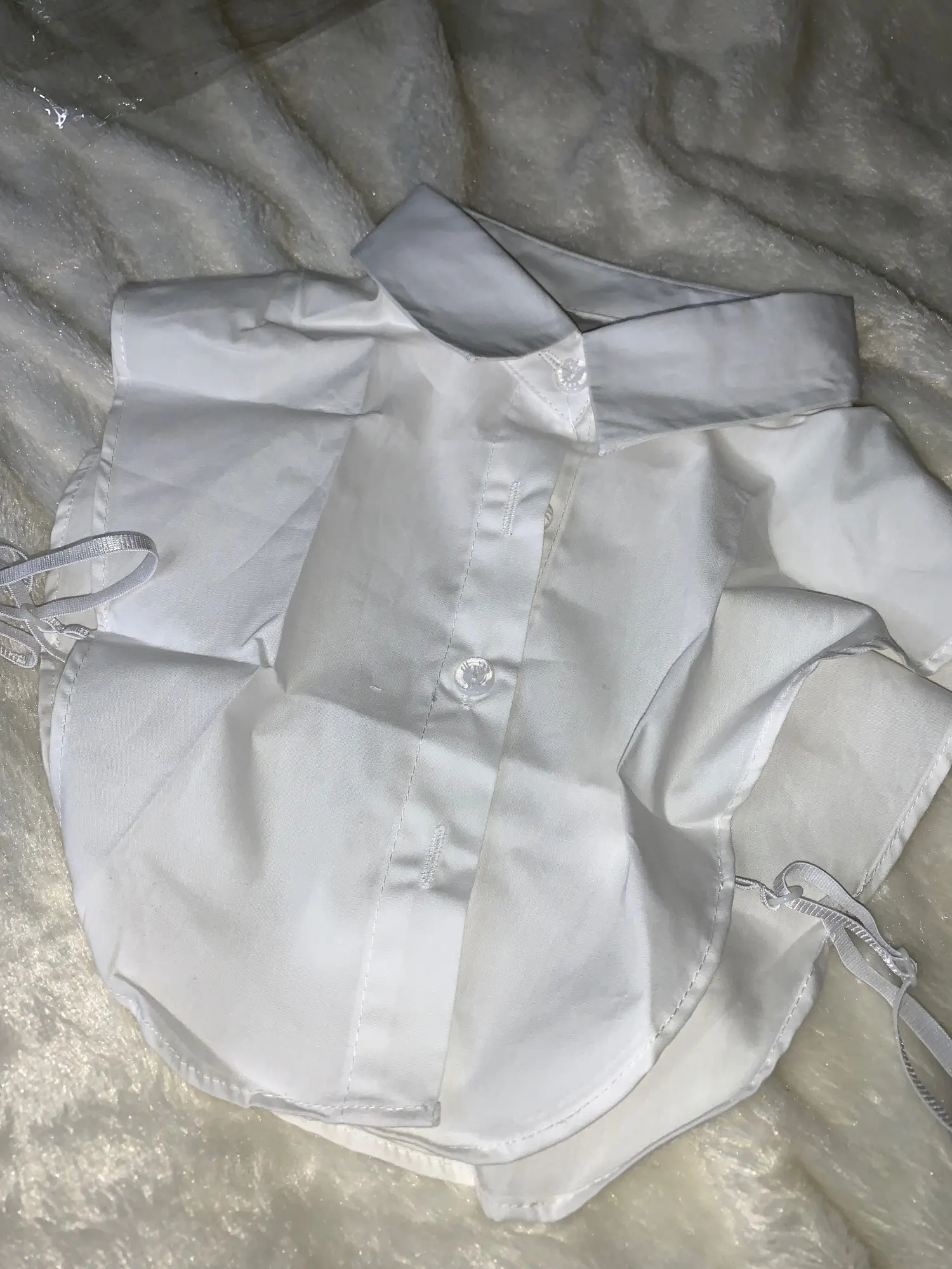 Манишка отличного качества, хб. Подойдёт для создания многослойного образа. Очень удобно наличие резинок. Воротник не соскальзывает. Единственное! Так как размер один, обратите внимание на длину ворота. Подойдёт только для худенькой шеи. Я прикрепила фото для удобства. Прежде чем заказывать, измерьте для сравнения ваши рубашки.