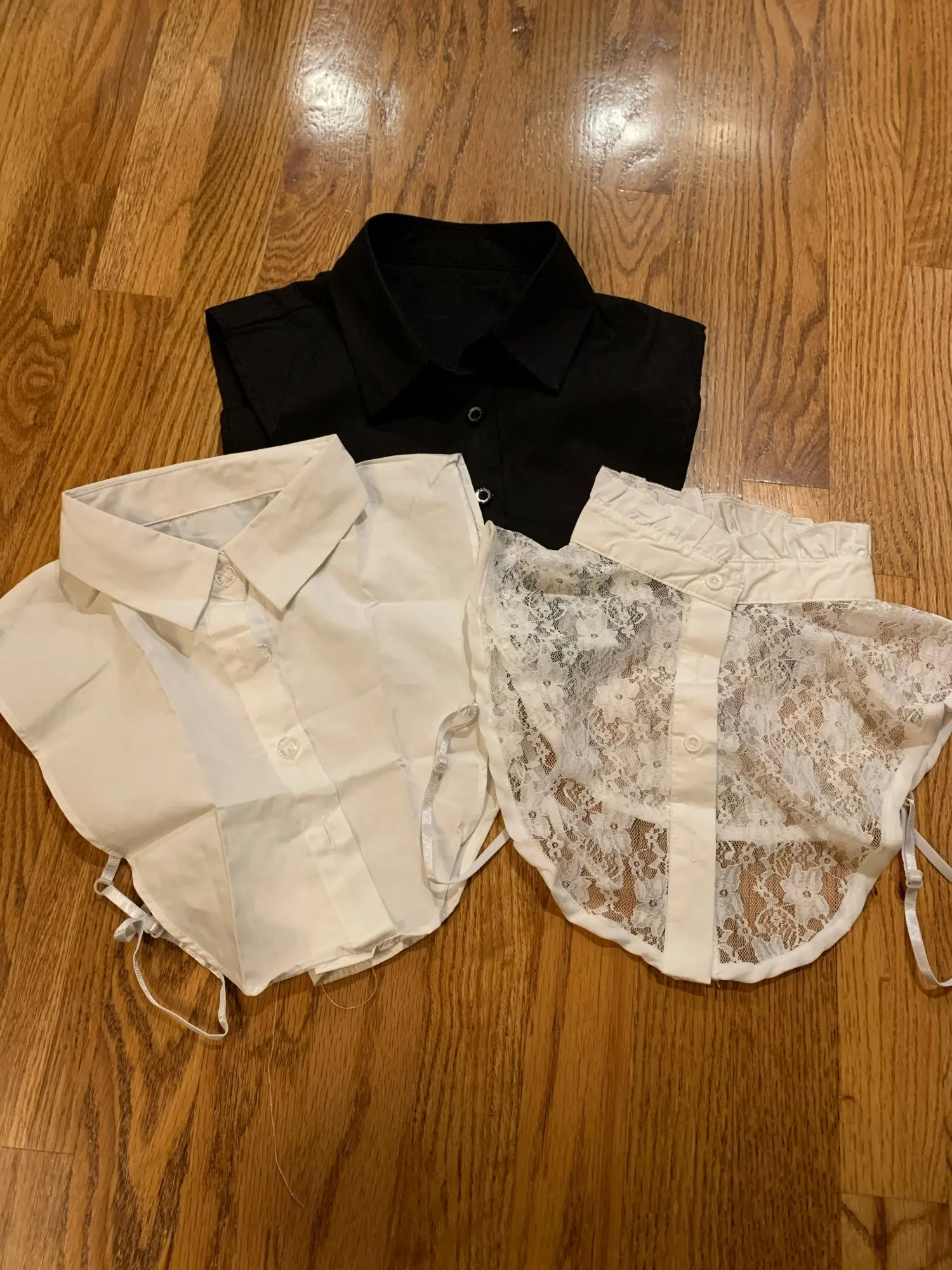 Новинка, Женская хлопковая кружевная блузка, съемный воротник, мужская женская рубашка, накладной воротник, блузка, топ, галстук женский