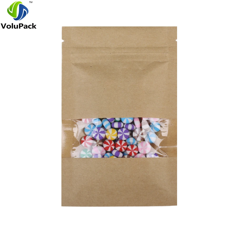 9x14 см (3,5x5,5 дюйма) 100 шт., прозрачное окошко, выемка, быстроразборные сумки, коричневый плоский пакет из крафт-бумаги на молнии