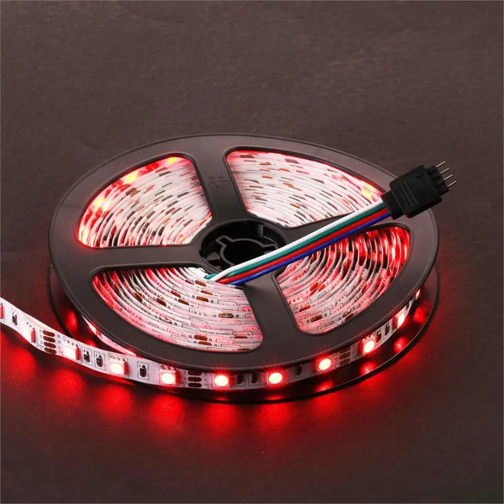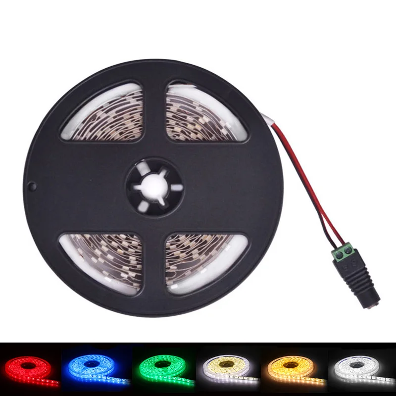 Гибкая светодиодная лента SMD5050, 60 светодиодов/м, 12 В постоянного тока, 5 м, одноцветная, теплая, белая, желтая, красная, зеленая, синяя, белая, не водонепроницаемая