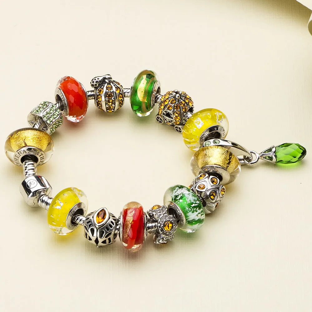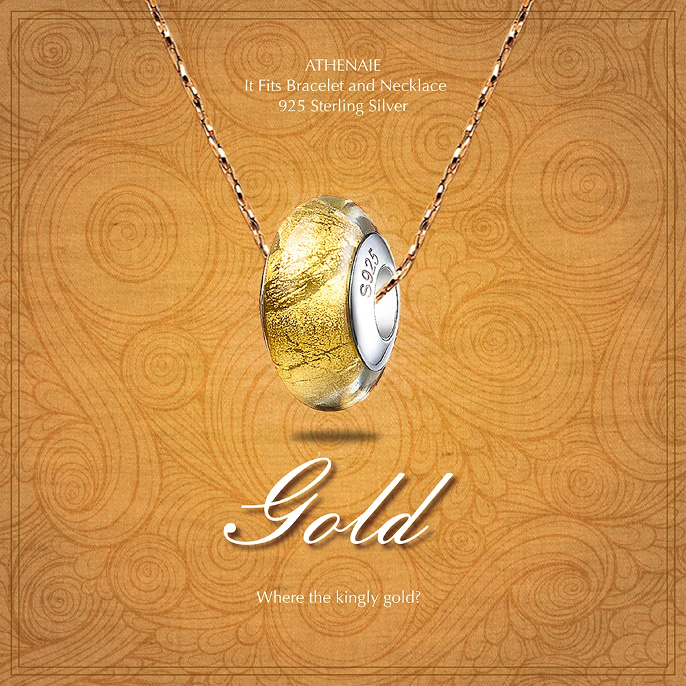 Браслет из настоящего муранского стекла ATHENAIE из серебра 925 пробы с золотым сердечником из фольги, Подходит для европейских браслетов, ювелирные изделия желтого цвета