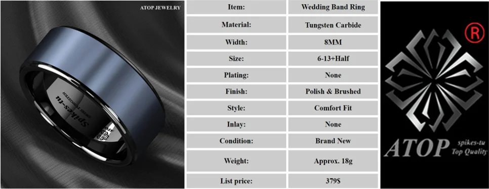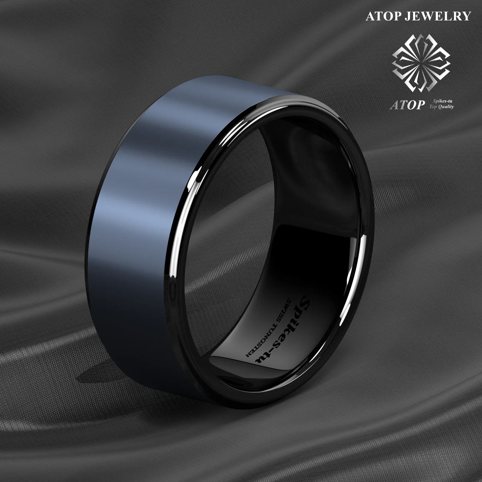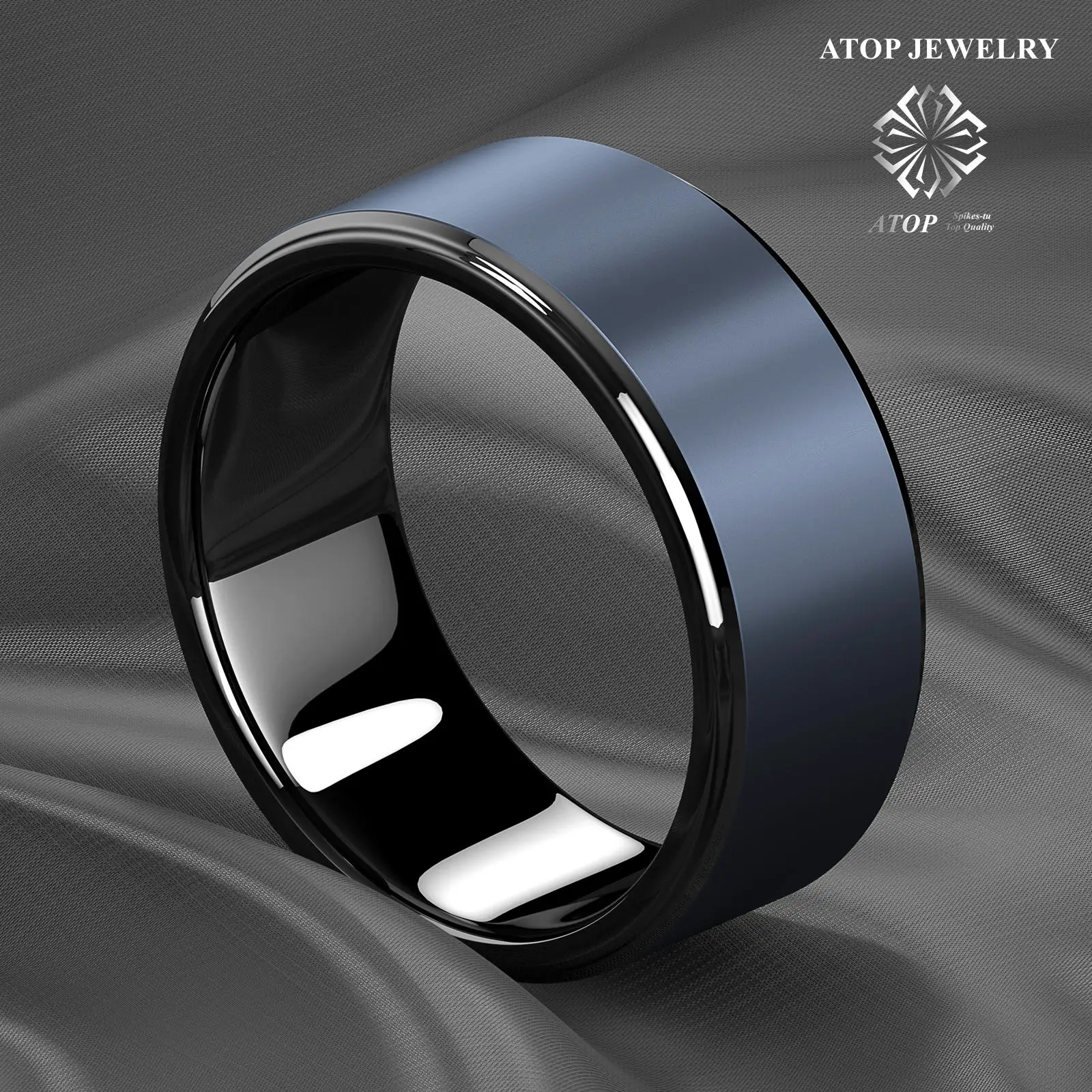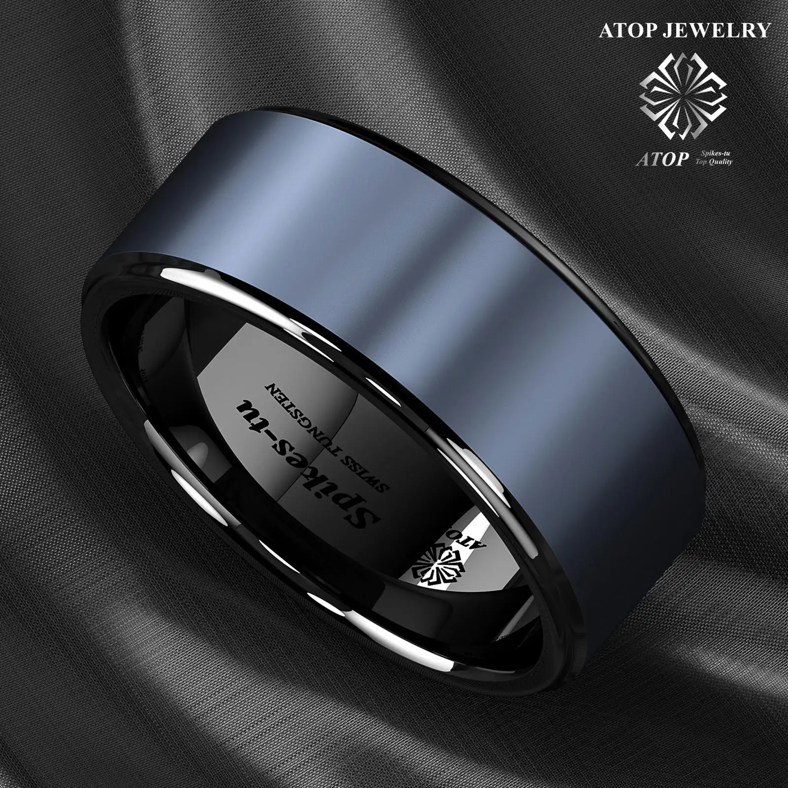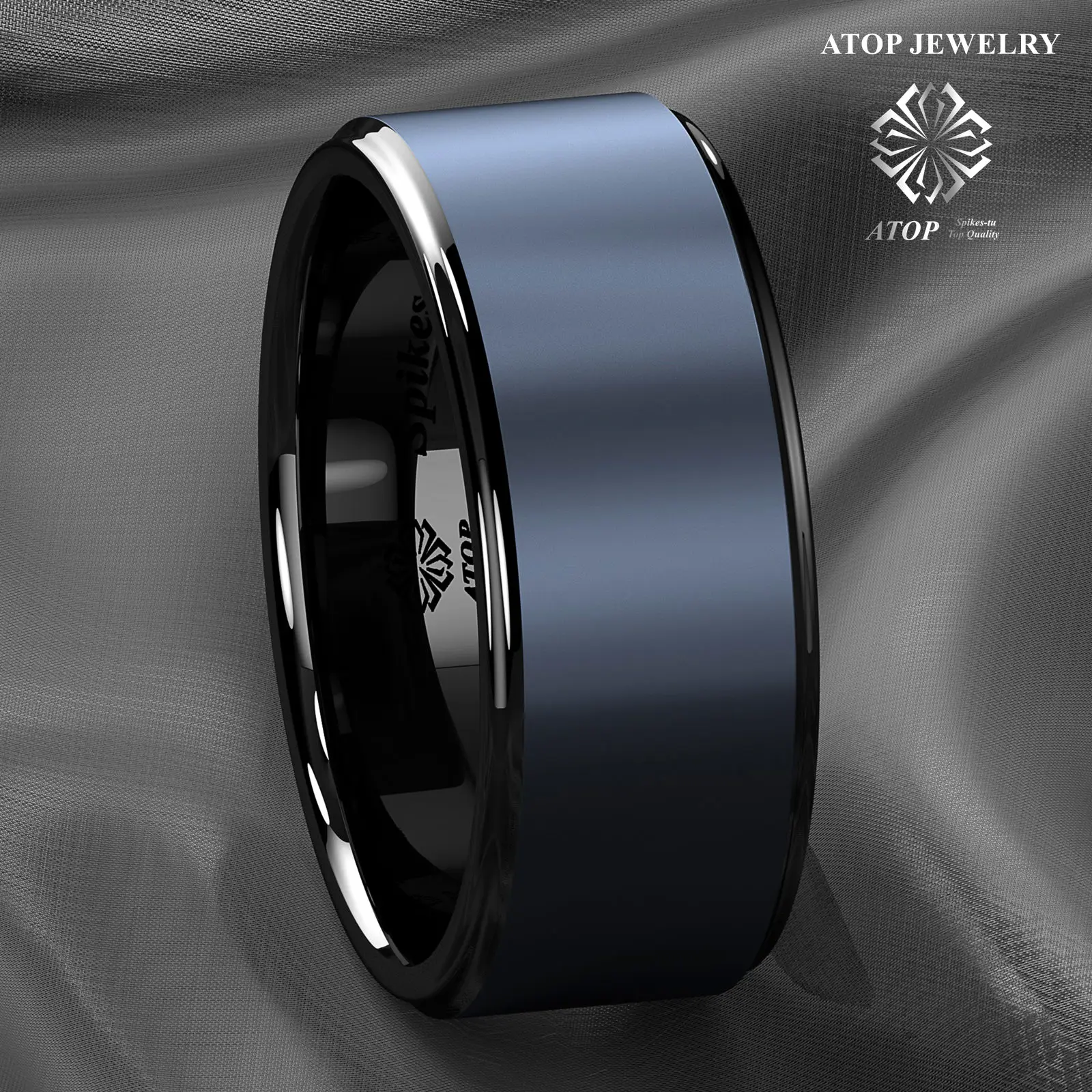 Черное кольцо из карбида вольфрама морской синий матовый центр обручальное кольцо мужские ювелирные изделия