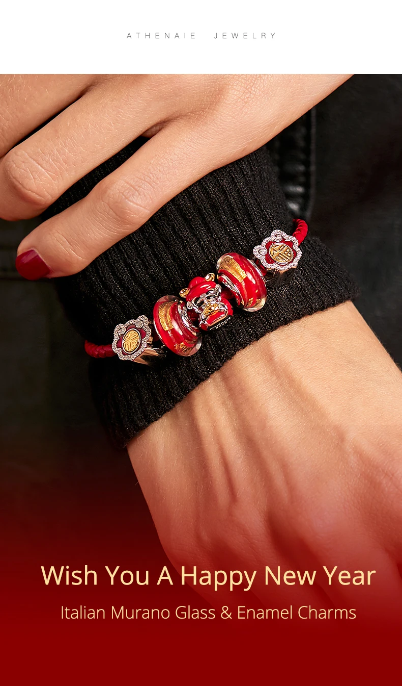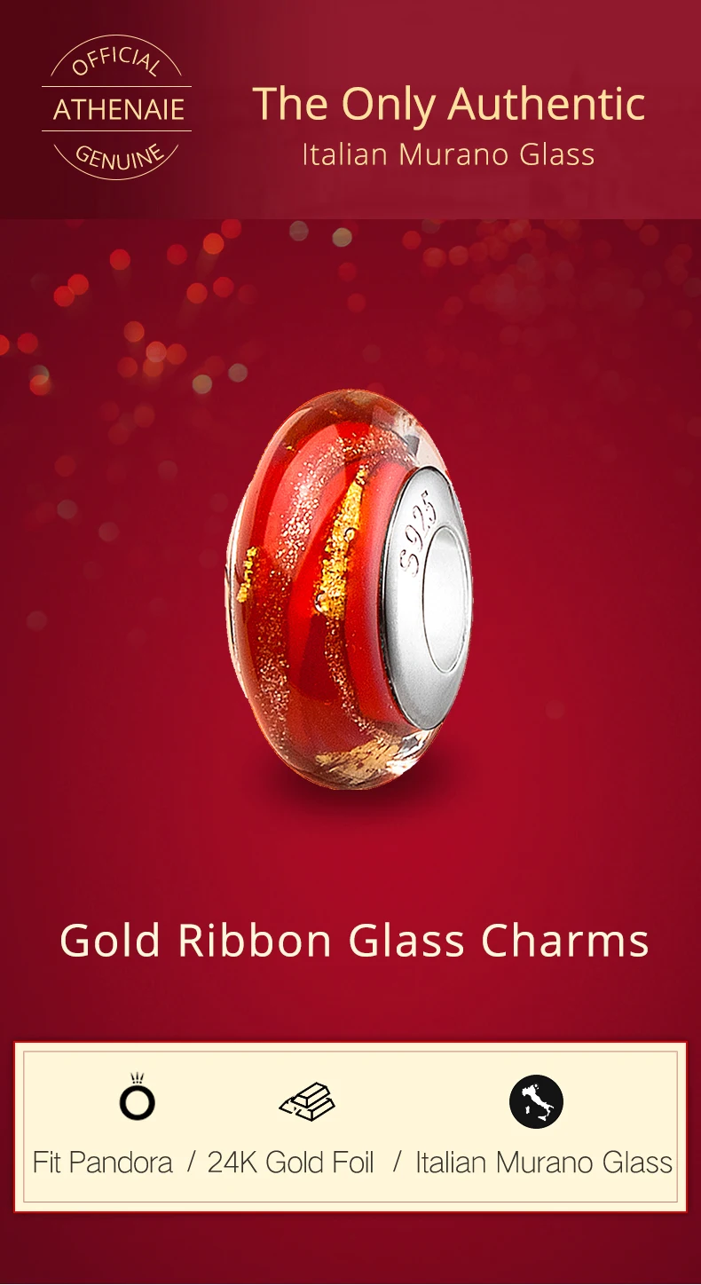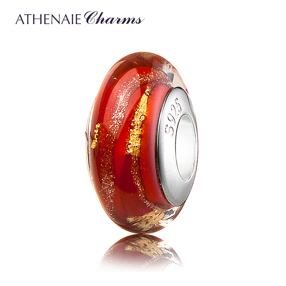 ATHENAIE подлинное муранское стекло 925 Серебряное ядро красное горячее 18KT золото Foill Подвески Бусины Подходят европейские браслеты ожерелье женские подарки