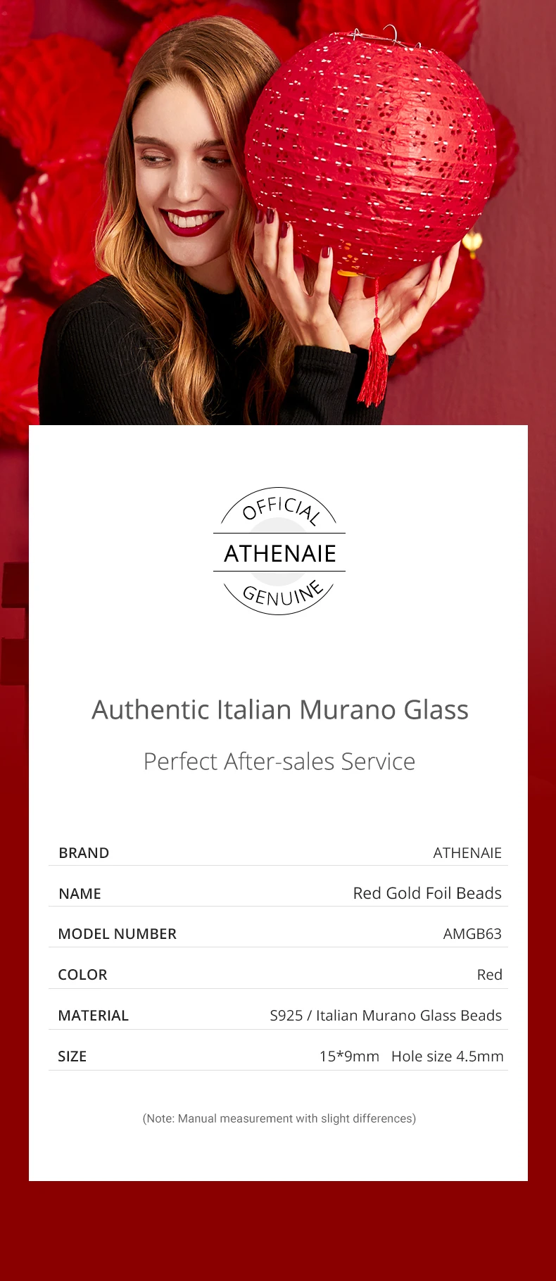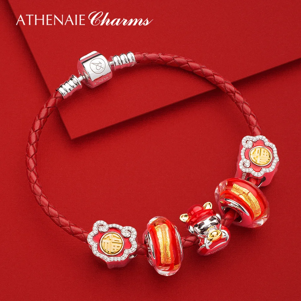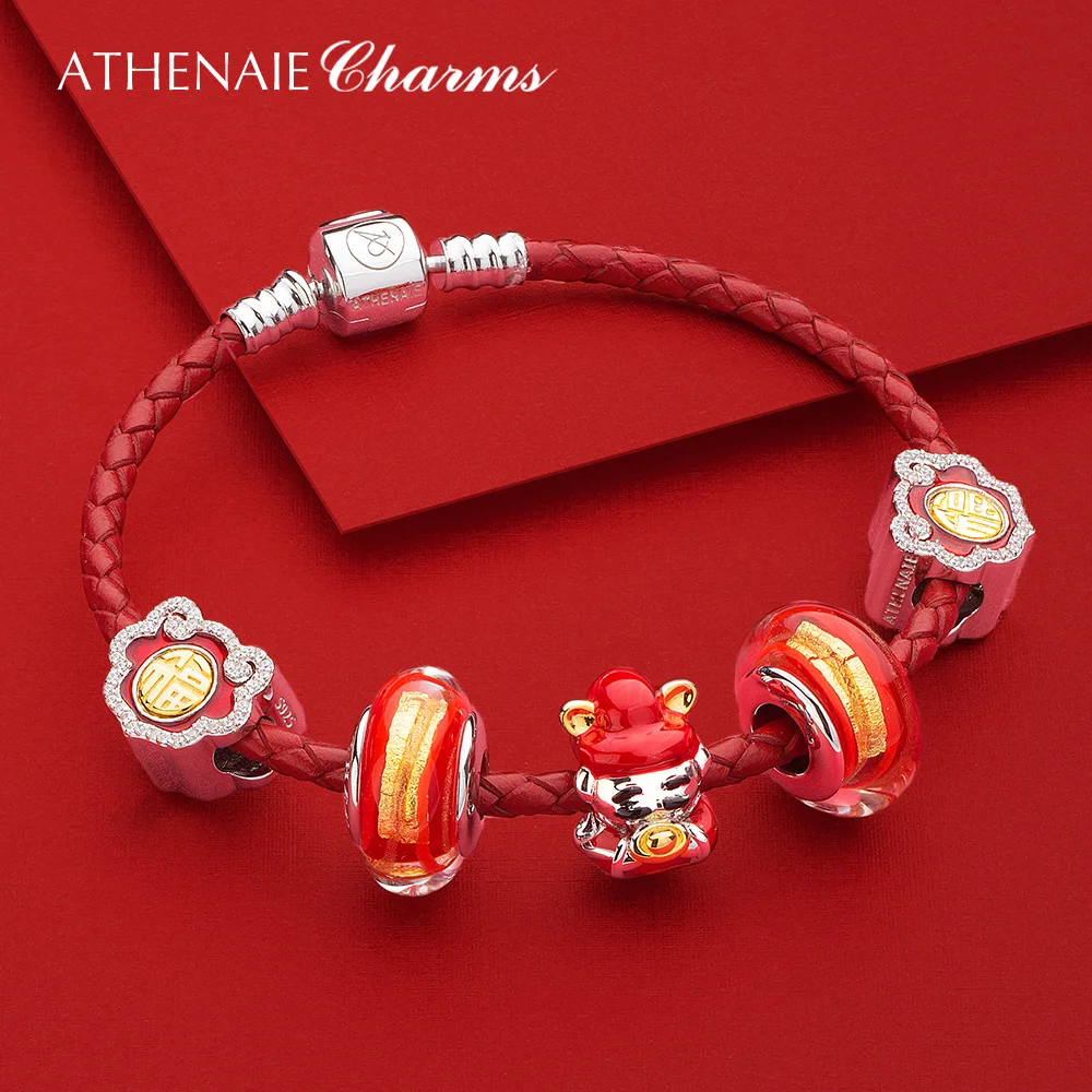 ATHENAIE подлинное муранское стекло 925 Серебряное ядро красное горячее 18KT золото Foill Подвески Бусины Подходят европейские браслеты ожерелье женские подарки