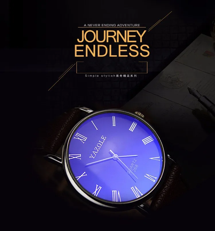 Yazole Брендовые Часы мужские модные повседневные с кожаным ремешком классические синие стеклянные мужские деловые кварцевые часы Montre Homme