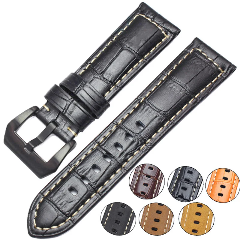 Ремешок из натуральной кожи для мужских часов, Толстый коричневый черный браслет для наручных часов, с пряжкой Для Panerai, 22 мм 24 мм