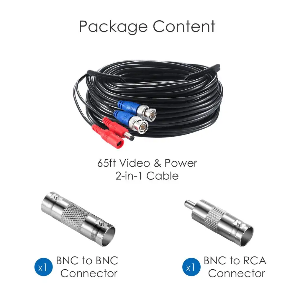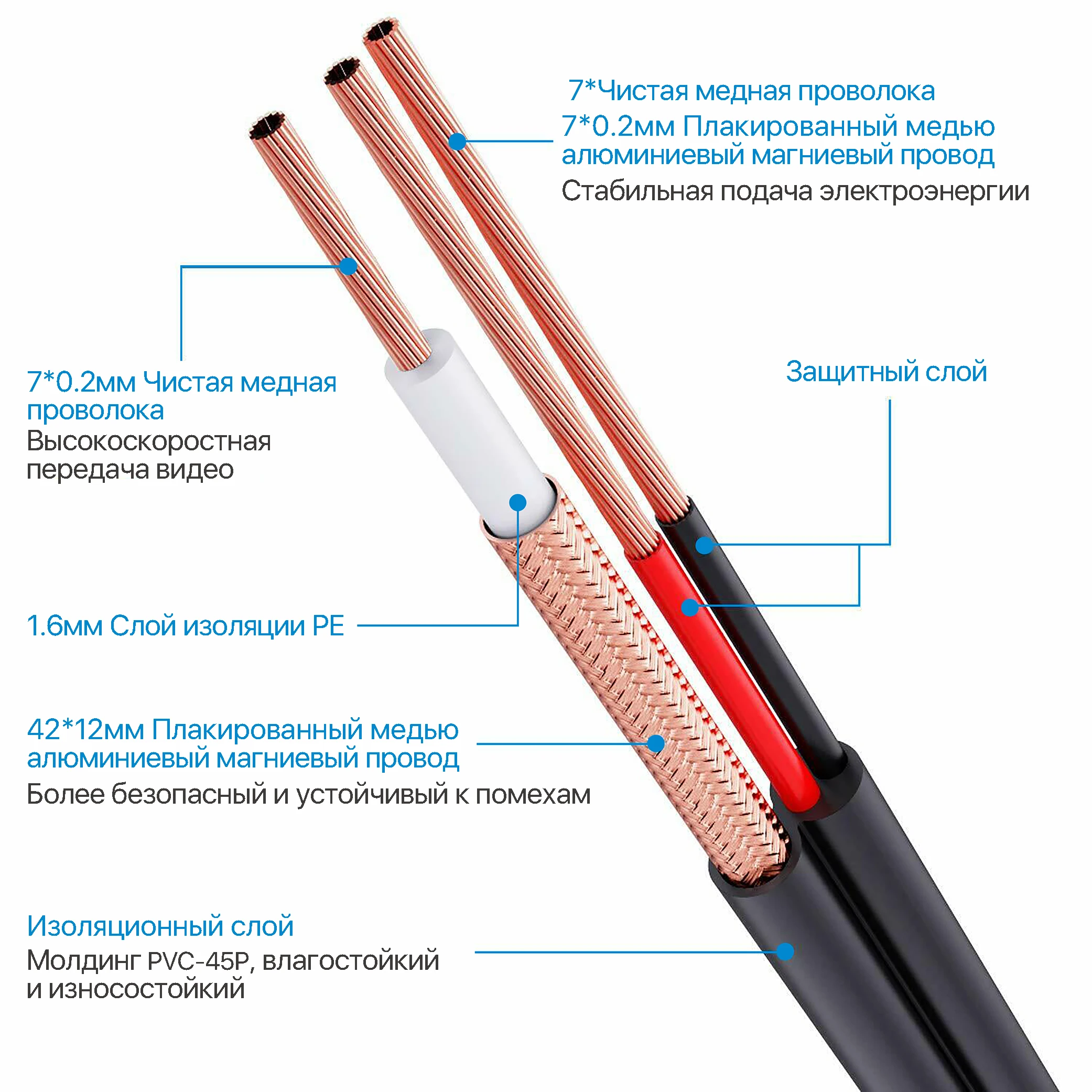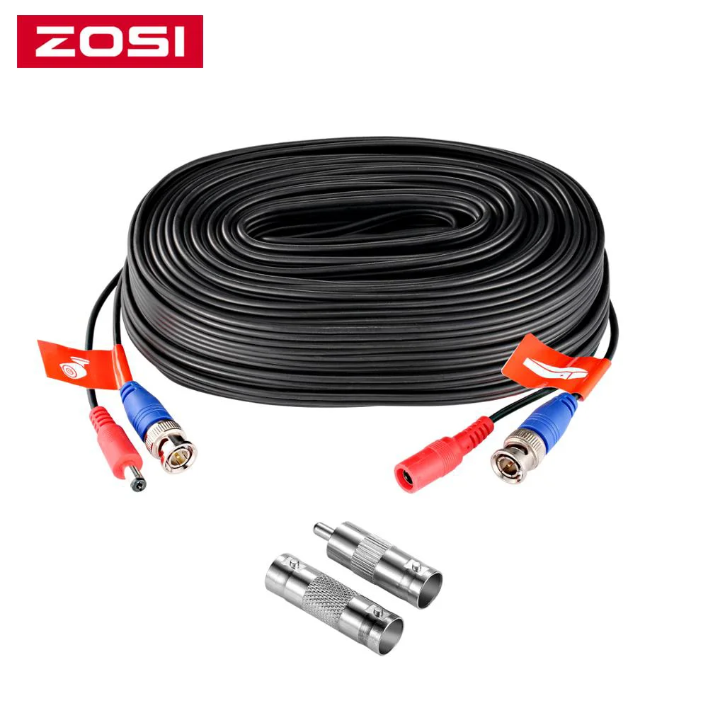 Кабель ZOSI для камеры видеонаблюдения, 18,3 м, 60 футов, штекер BNC + DC, черный