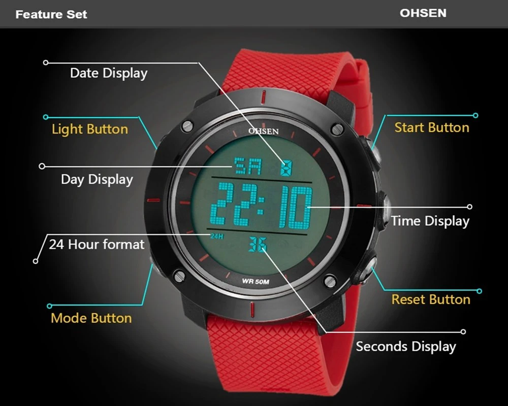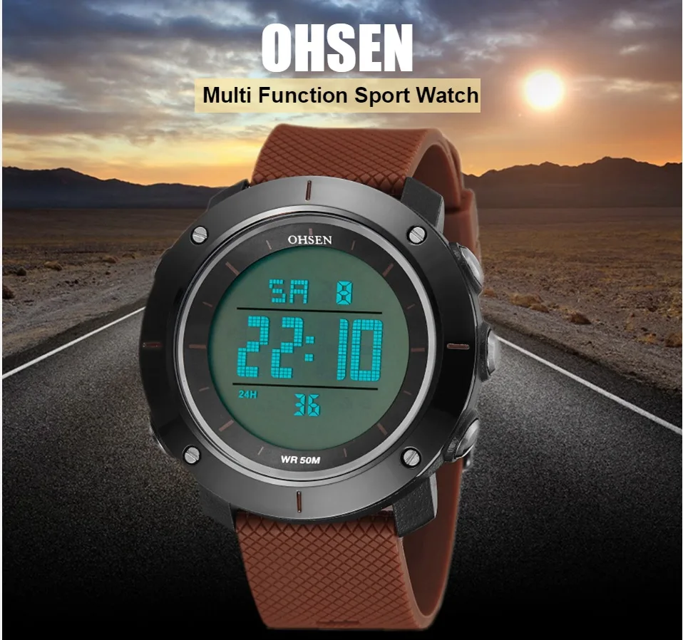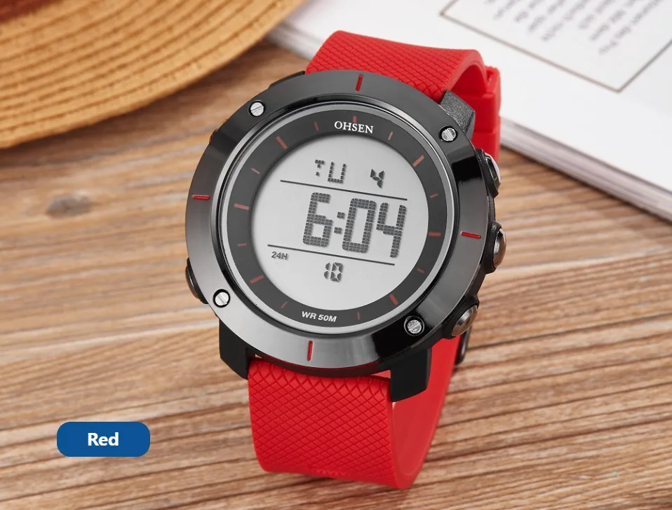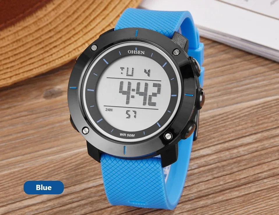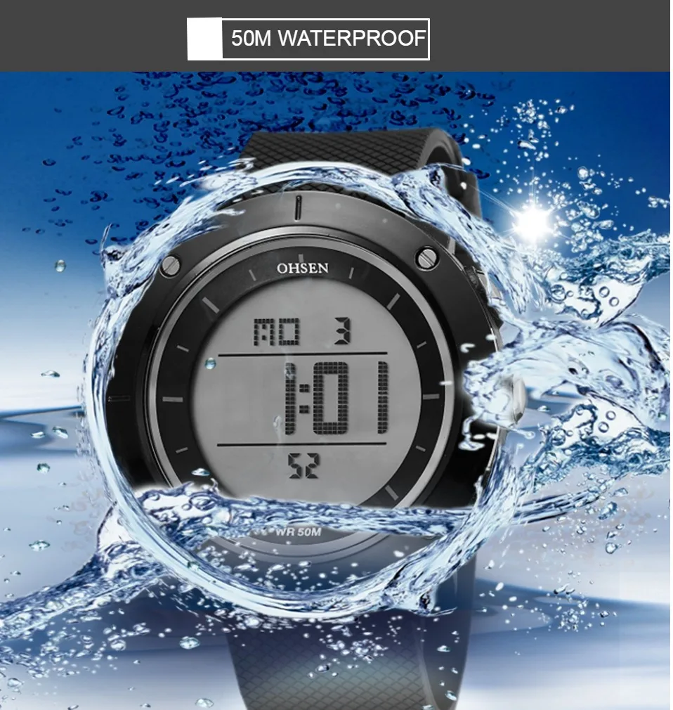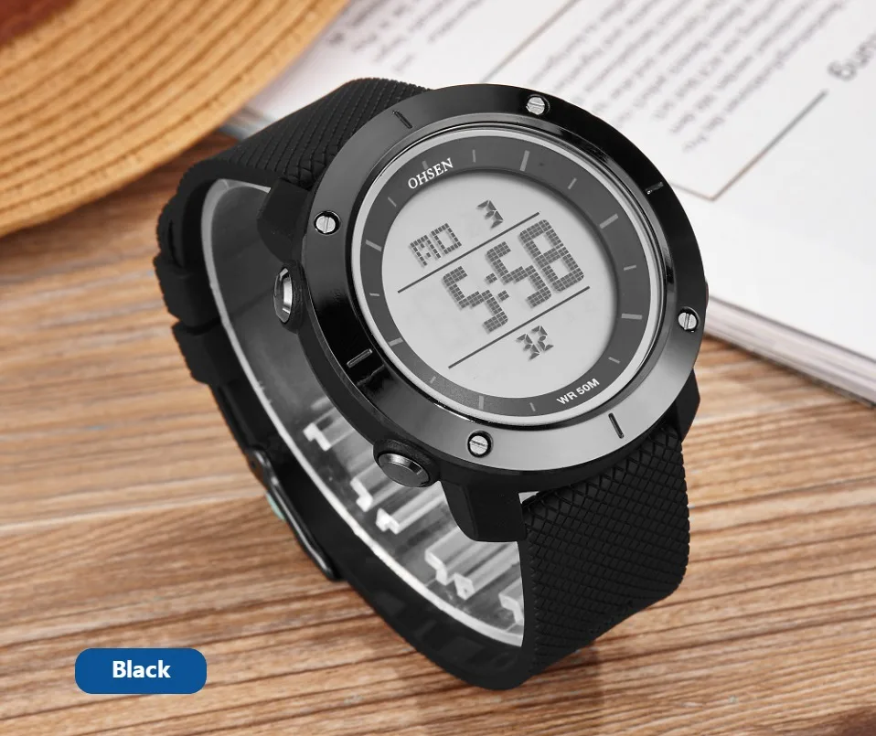 OHSEN черные цифровые спортивные часы мужские водонепроницаемые све...