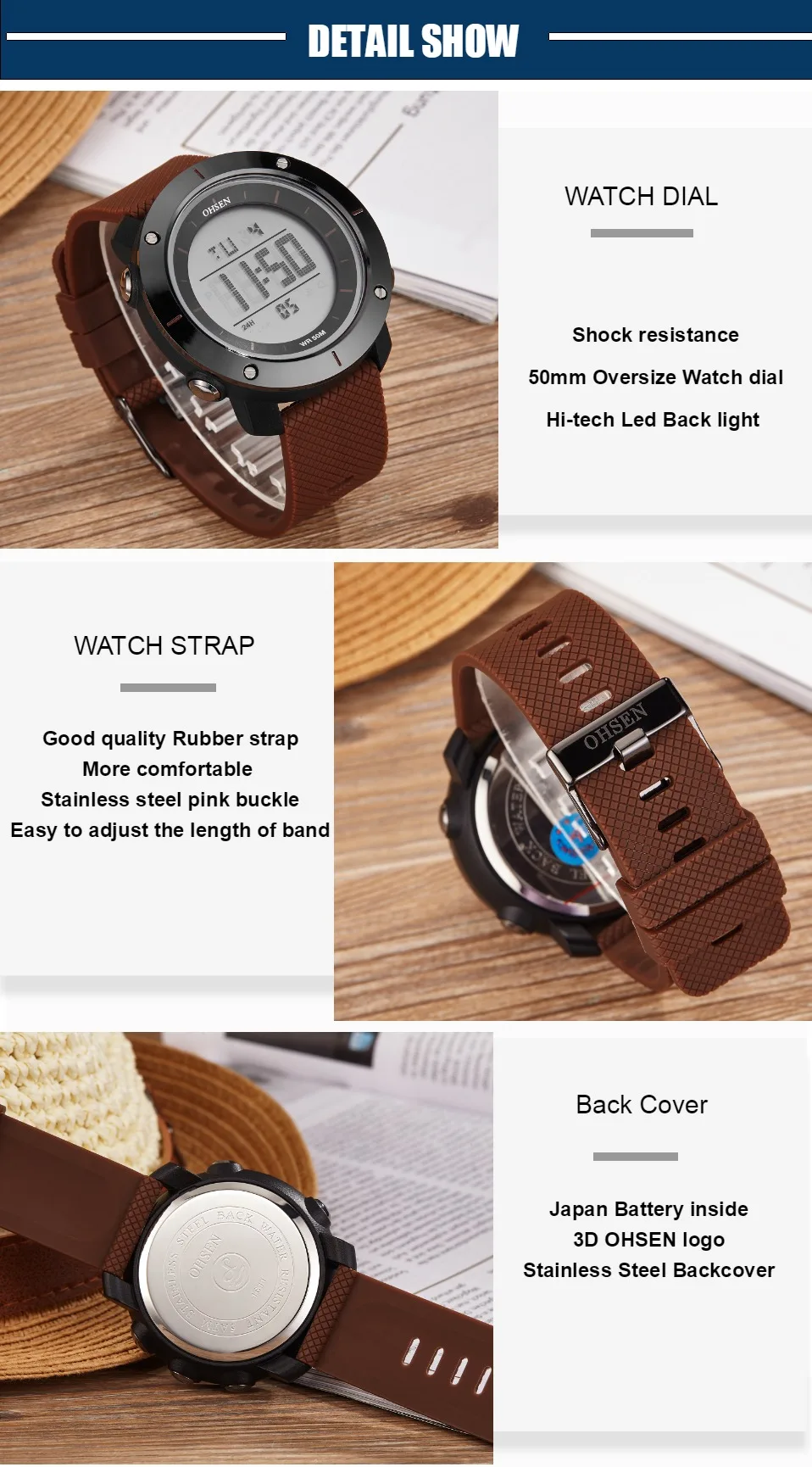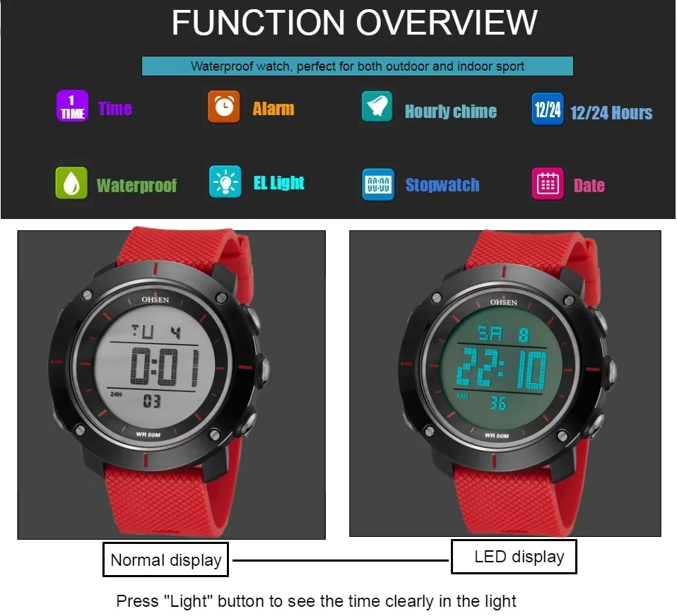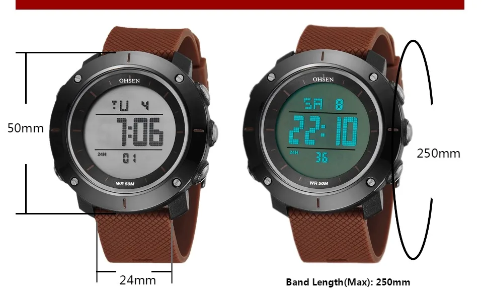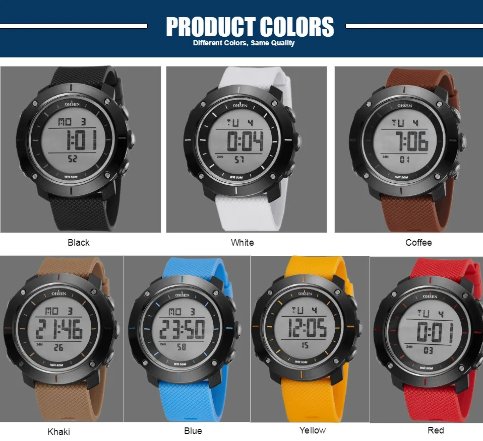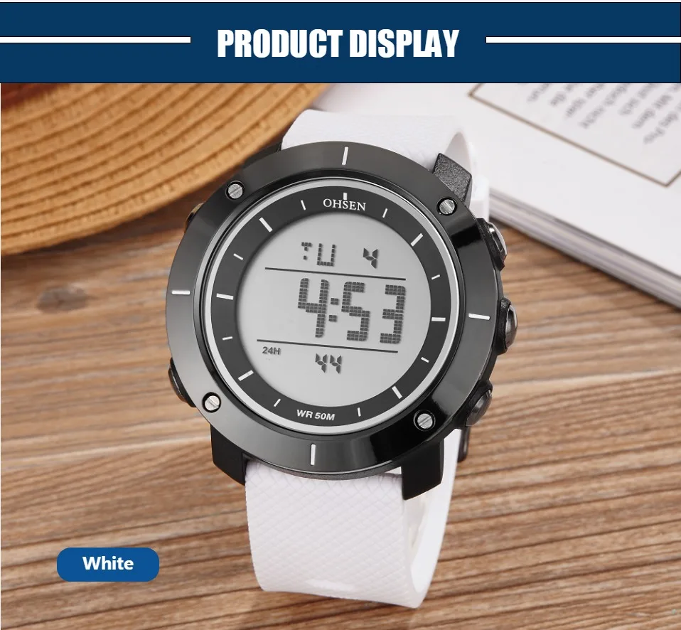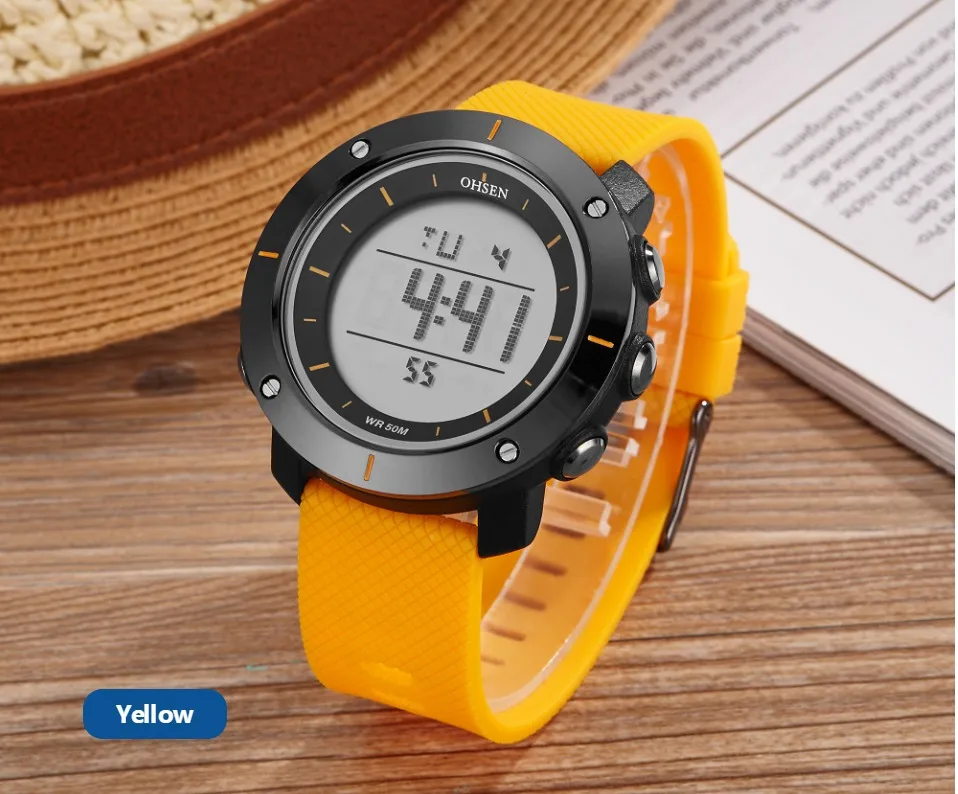 OHSEN черные цифровые спортивные часы мужские водонепроницаемые све...