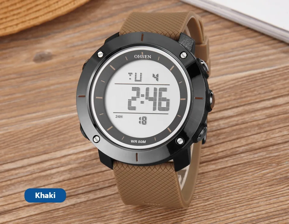 Модные Цифровые мужские часы OHSEN, мужские часы цвета хаки, спорти...
