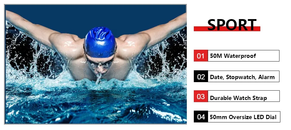 Цифровые мужские военные спортивные часы reloj hombre Red 50M Diver...