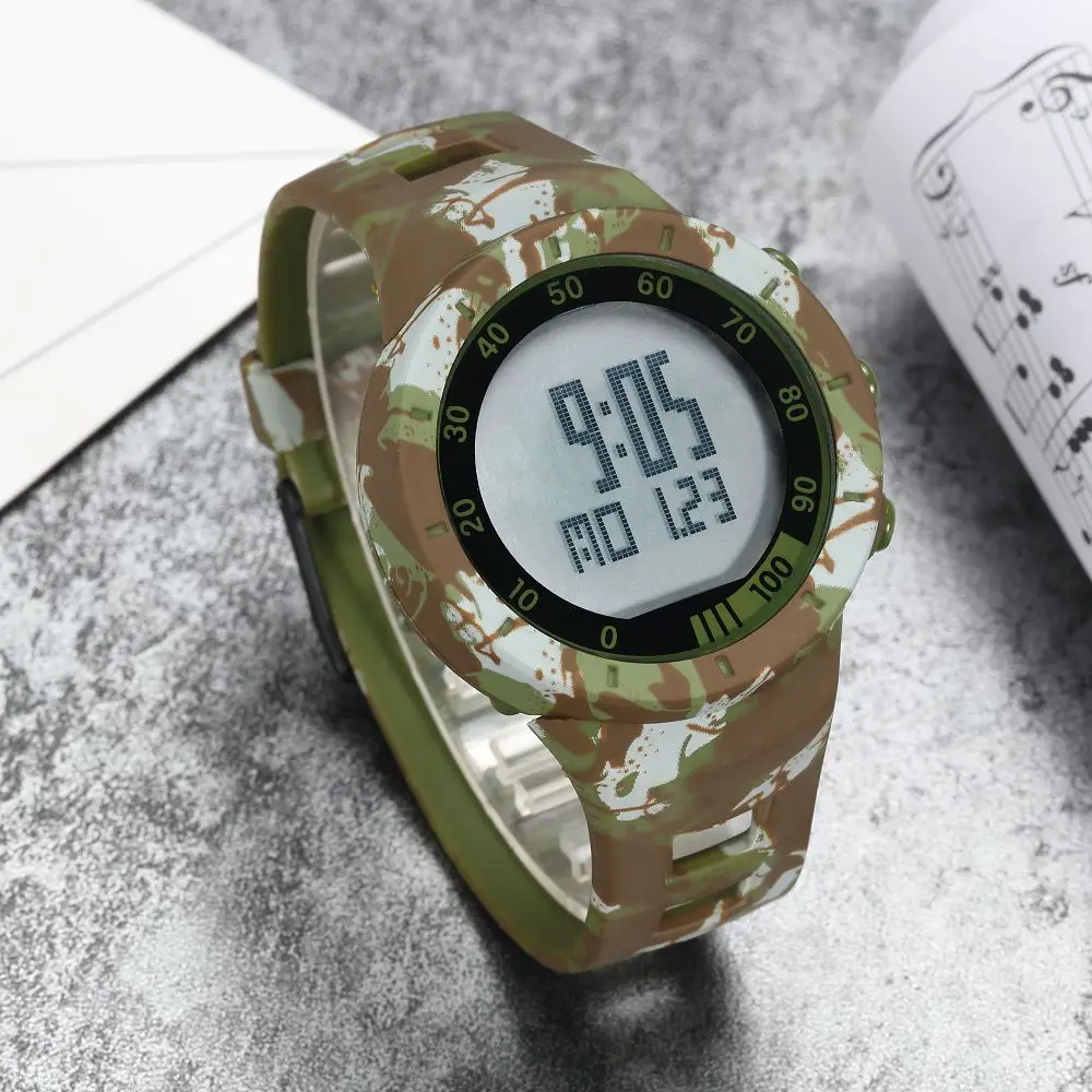 Новая модель высокого качества Цифровой: часы, минуты, секунды, pm, месяц, дата, день Формат 12/24 часов Функция будильника и ежечасного звонка Водонепроницаемость на глубине до 50 м (не нажимайте кнопки в воде) Дополнительная функция подсветильник Ки ЖК-дисплея для четкого отображения времени в темноте Ударопрочный, идеально подходит для занятий как на открытом воздухе, так и в помещении, таких как бег, альпинизм, рыбалка и т. Д.