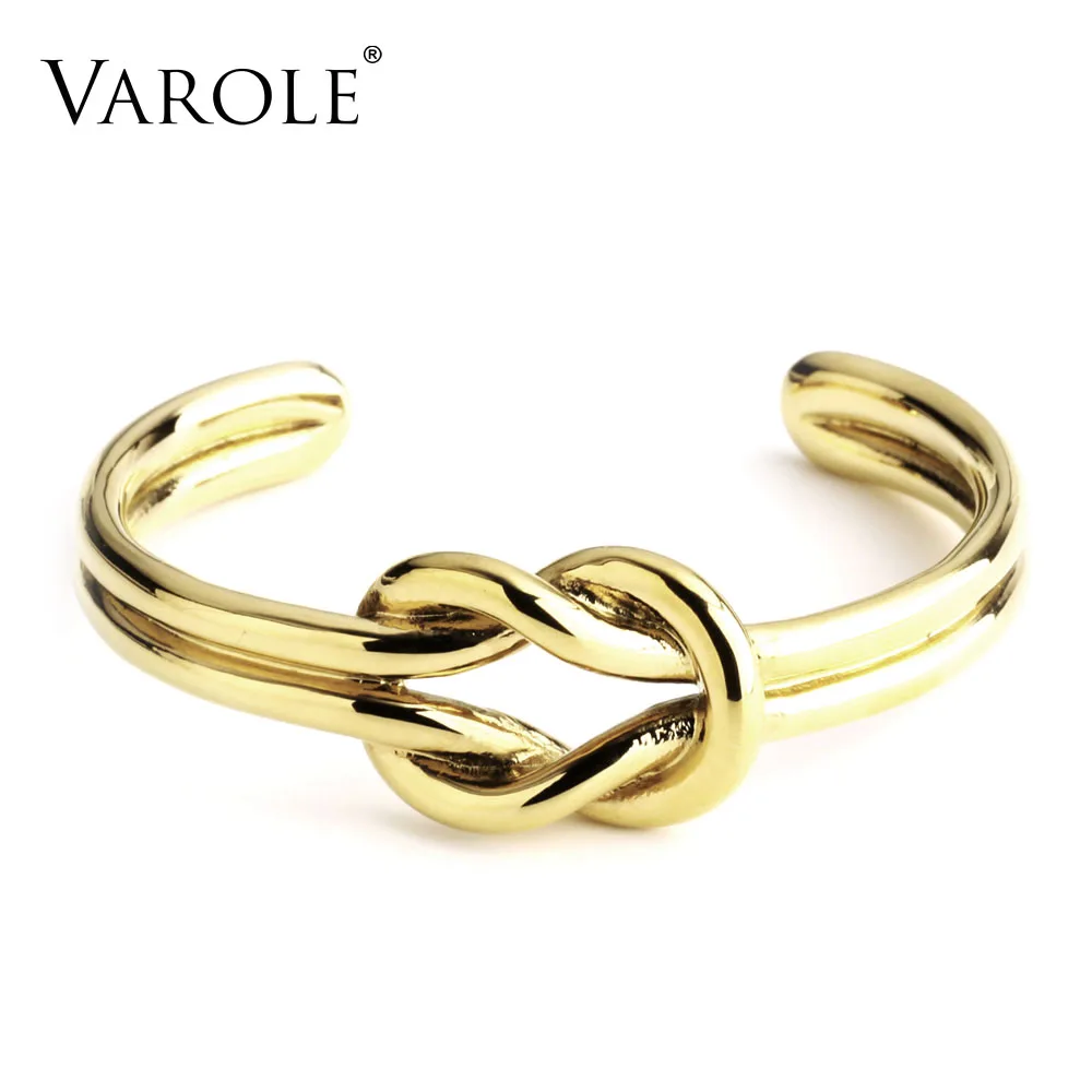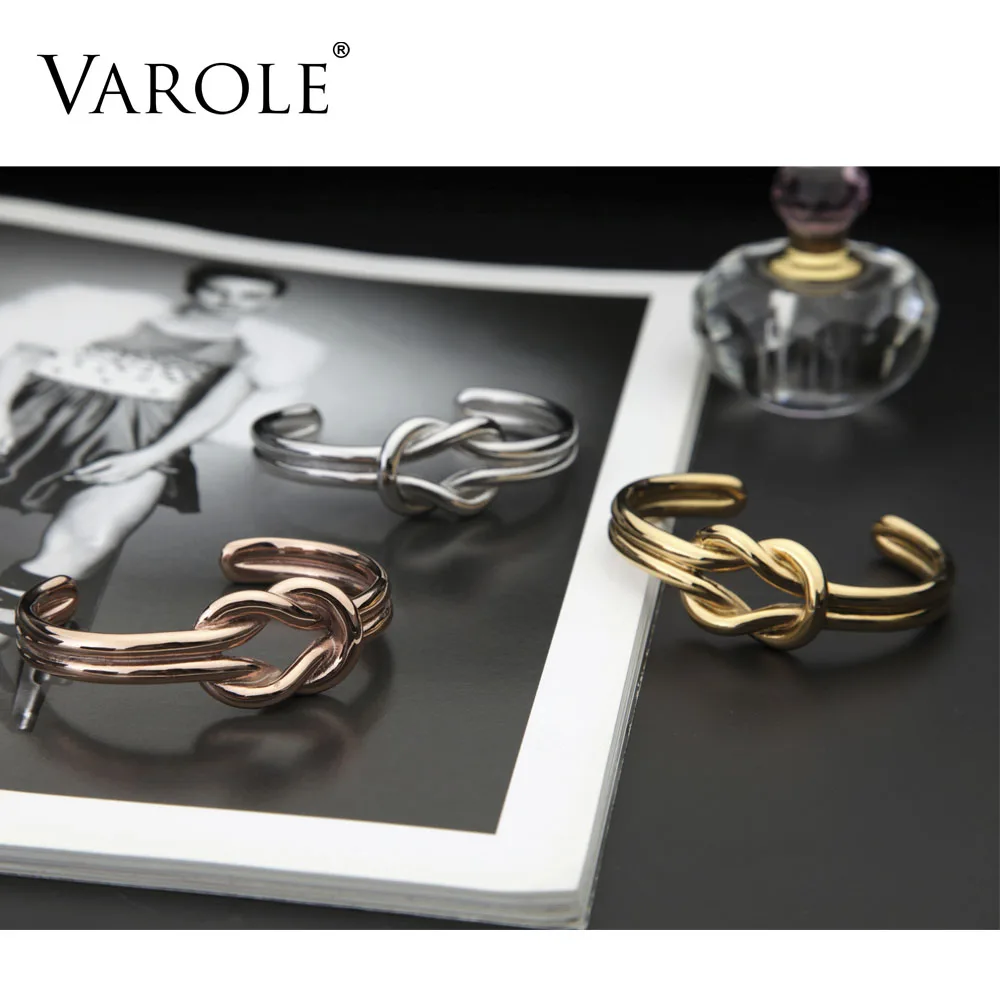 Женский Простой Браслет-манжета VAROLE с узлом, летние браслеты-манжеты для женщин, ювелирные изделия розовогозолотого цвета, металлический браслет из 100% меди