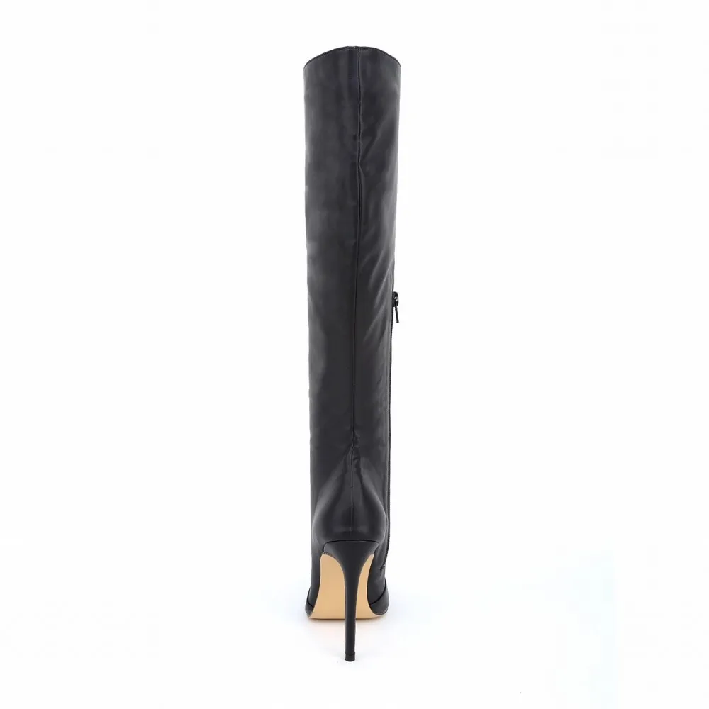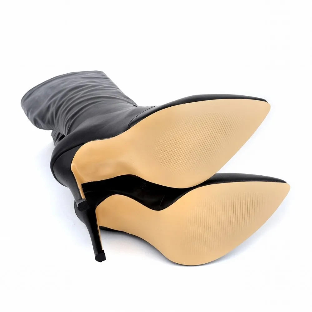 LOSLANDIFENженские зимние сапоги; Модные матовые плюшевые сапоги до колена с острым носком; Женская теплая зимняя обувь до середины икры на высоком каблуке; 769-3MA