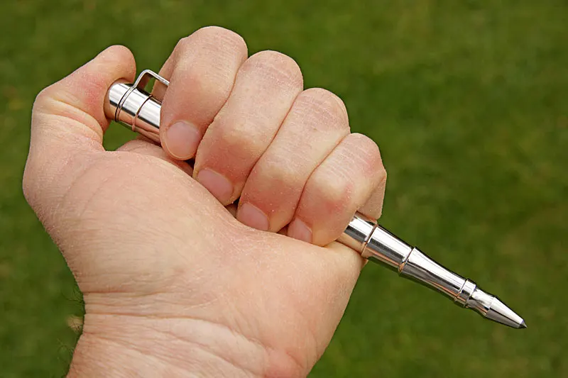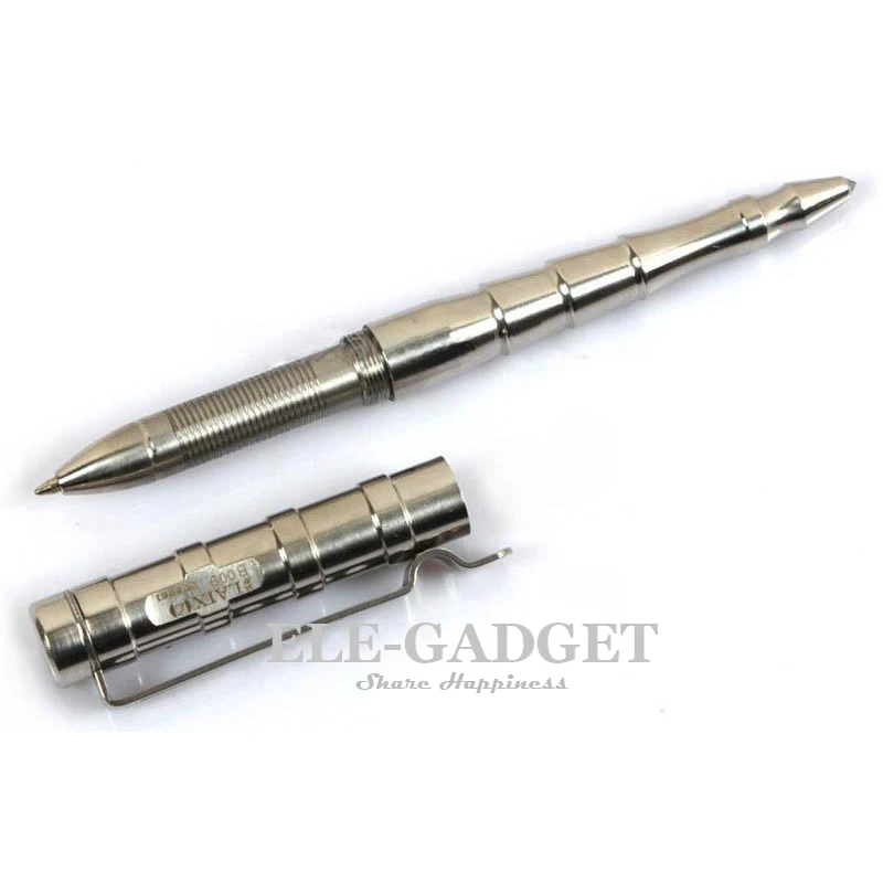 Красиво сделанная тактическая ручка из нержавеющей стали, которая кажется очень крепкой в руке, и она должна работать очень хорошо во время аварийной ситуации-независимо от того, сломает ли окно автомобиля после аварии, или дело с наёмником: острый вольфрамовый наконечник означает бизнес. Также очень хорошо записывает. Он пришел в красивую презентационную коробку вместе с двумя дополнительными шариковыми картриджами. Отличный продукт, настоятельно рекомендуется, если вы хотите тактическую ручку, которая поставляется с качеством и долговечностью.