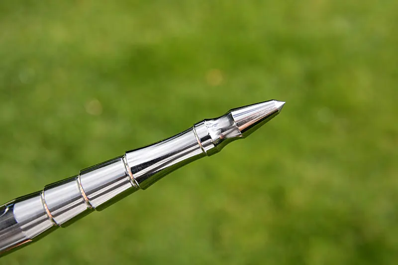 Реально увесистая штука, как в описании - 102 гр. Поверхность гладкая. Это уже больше орудие ближнего боя, чем письменный прибор. Всё отлично подогнано, ни перекосов, ни зазоров. На резьбе у съемного пишущего узла уплотнительная резинка. Писать не очень удобно - центр тяжести смещен в сторону стеклобоя. Хотя, конечно, пишет отлично. Стержень скользит легко и не мажет. В комплекте два запасных. Упакована в черную коробочку
