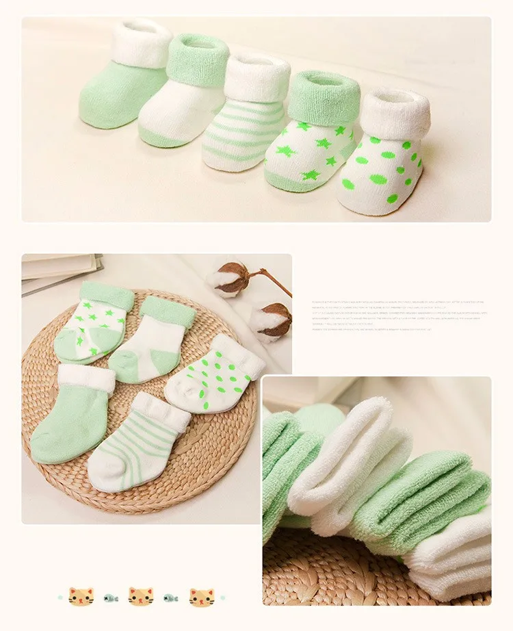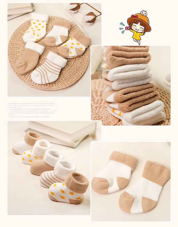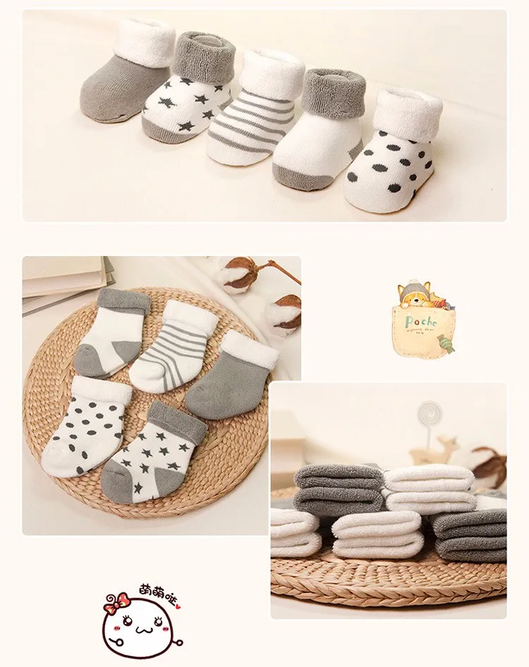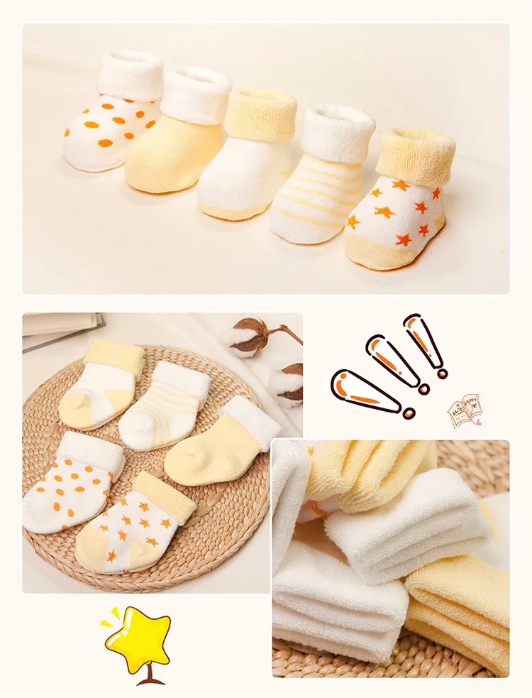 Носки для малышей хлопковые утепленные короткие носки для новорожденных 5 пар, унисекс, для девочек и мальчиков 0-6 месяцев icon star icon star icon star icon star icon star